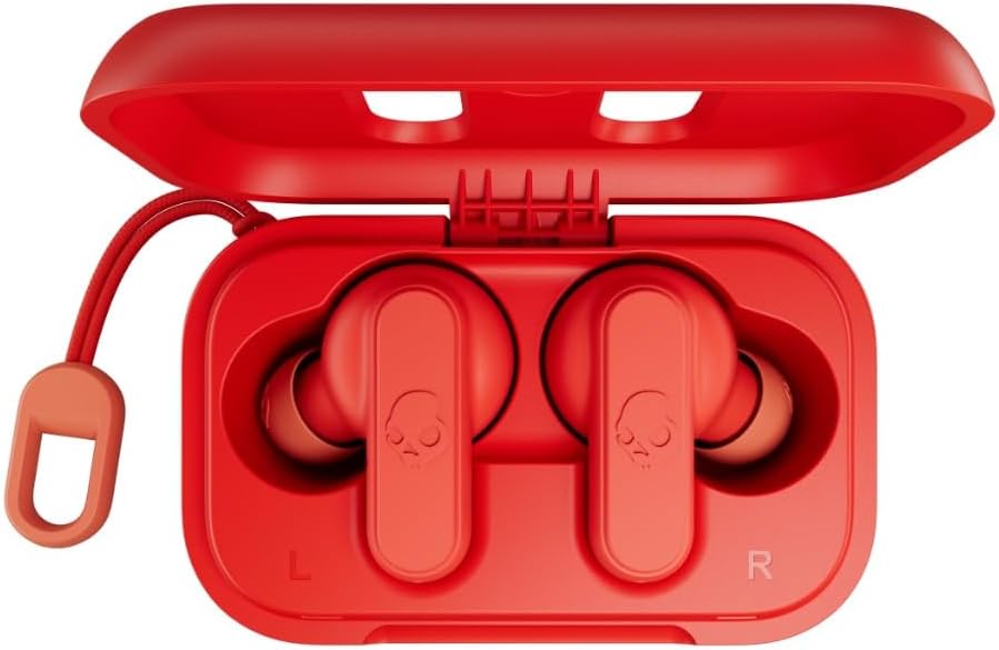 Skullcandy Dime auriculares inalámbricos en-oreja, batería de 12 horas, micrófono, funciona con dispositivos iPhone Android y Bluetooth - Rojo