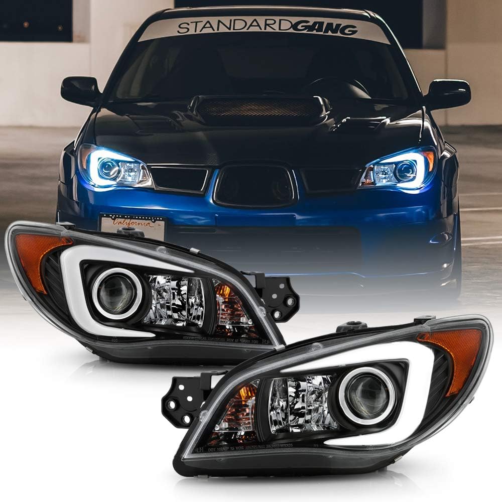 ACANII - Para [Modelo Halogen] 2006-2007 Subaru Impreza WRX Tubos de Luz LED con Carcasa Negra y Proyector