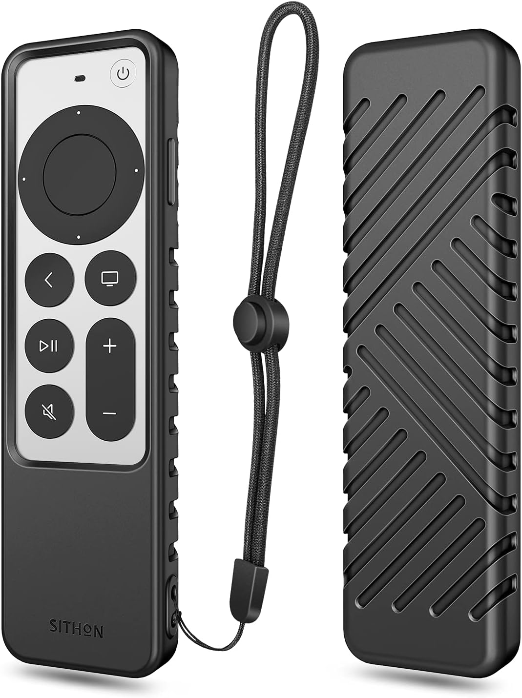 Funda de silicona SITHON para control remoto de Apple TV 4K 2022 2021, ligera, resistente a golpes y antideslizante, con correa para Apple TV 4K / HD Siri Remote (3ª gen / 2ª gen), negro