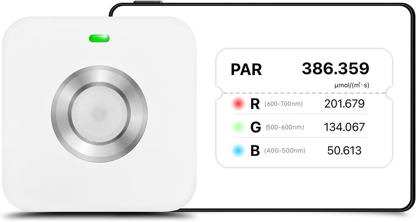 Medidor PAR Cuántico, 6000 umol/(㎡s), Calculadora DLI, Registro de Distribución PPFD, Mostrar PAR para Rojo y Azul por separado en la luz, Espectro Completo