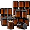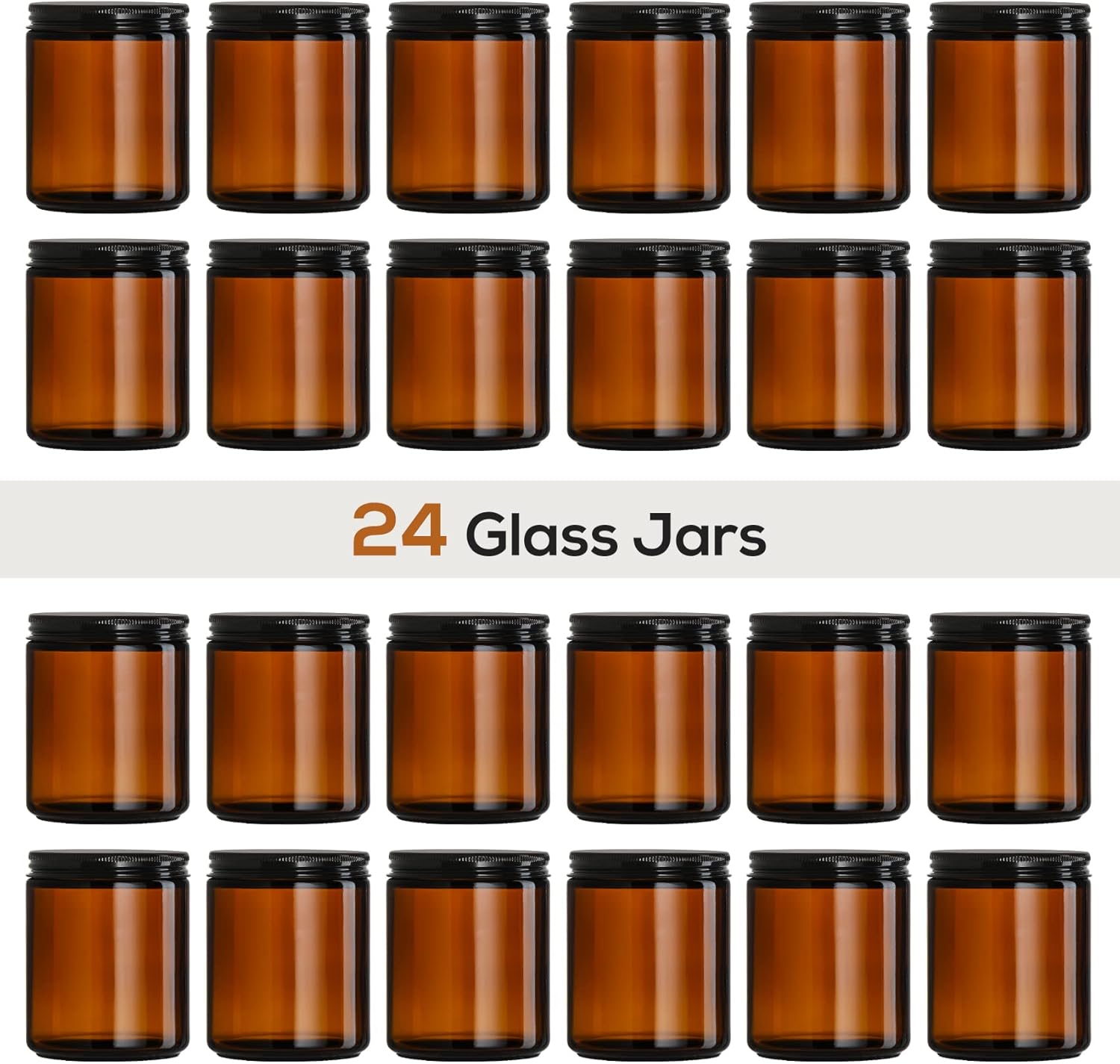Paquete de 24 frascos de vidrio ámbar de 8oz con tapas negras - Para hacer velas, almacenamiento de alimentos, enlatado, especias, líquidos - herméticos y aptos para lavavajillas