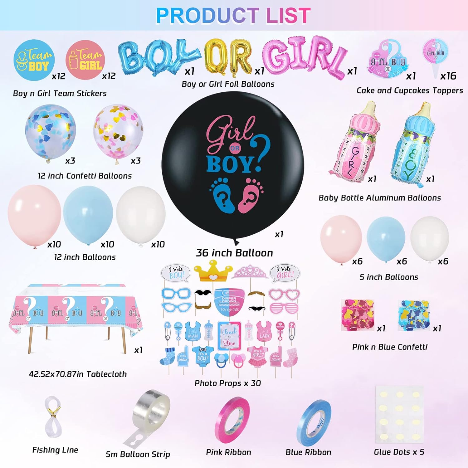BLOOMWIN 139PCS Kit de Decoración de Género para Bebé, Niño o Niña - Ideas de Decoración para Fiesta de Revelación de Género