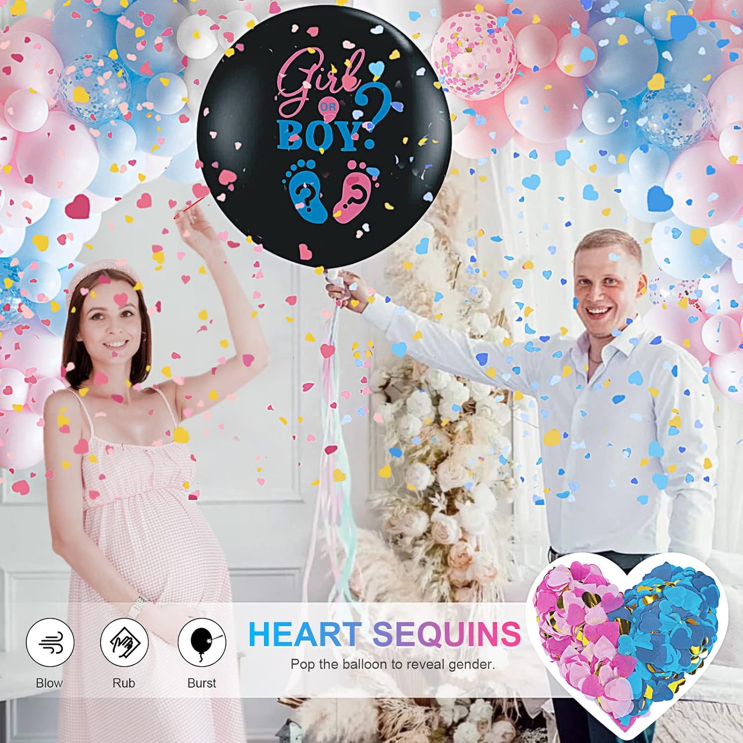 Globo Revelador de Género Negro y Gigante - ¡Grande y divertido globo para reventar para revelar el género! La abertura del globo para niño o niña es lo suficientemente amplia para llenar fácilmente con confeti, confeti rosa para niña, confeti azul para niño.