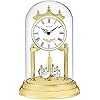 Diseño elegante: Cuenta con una base de metal pulido con acabado dorado y una esfera con números romanos blancos adornada con un acento de hoja de oro, todo encapsulado dentro de una cúpula de cristal transparente de 9 pulgadas.