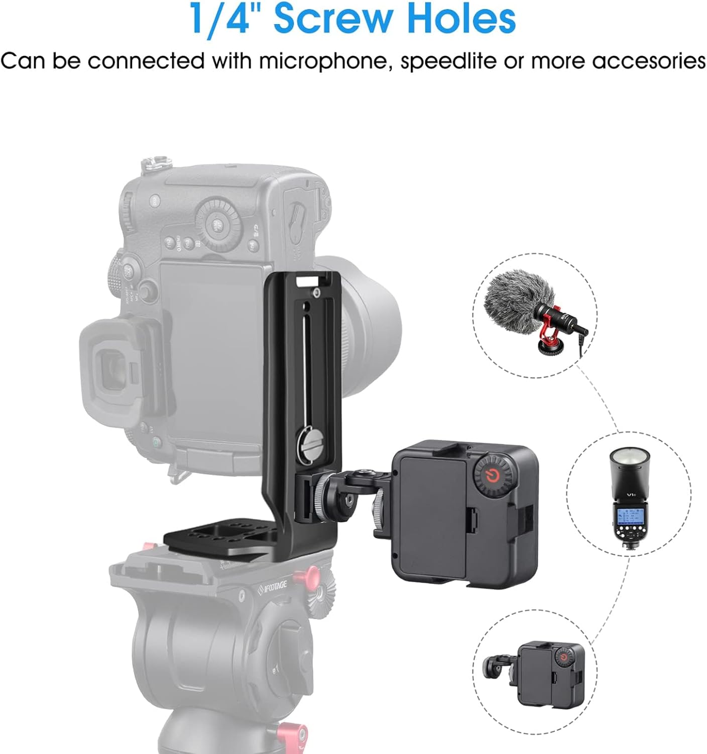 【CON ORIFICIOS DE 1/4'' PARA USO DE EXTENSIÓN】Con varios orificios de tornillo para instalar micrófono, speedlite, panel de luz, monitor de campo y más accesorios fotográficos, fácil para grabaciones en exteriores, transmisión en vivo de Instagram IGTV o cualquier grabación de video