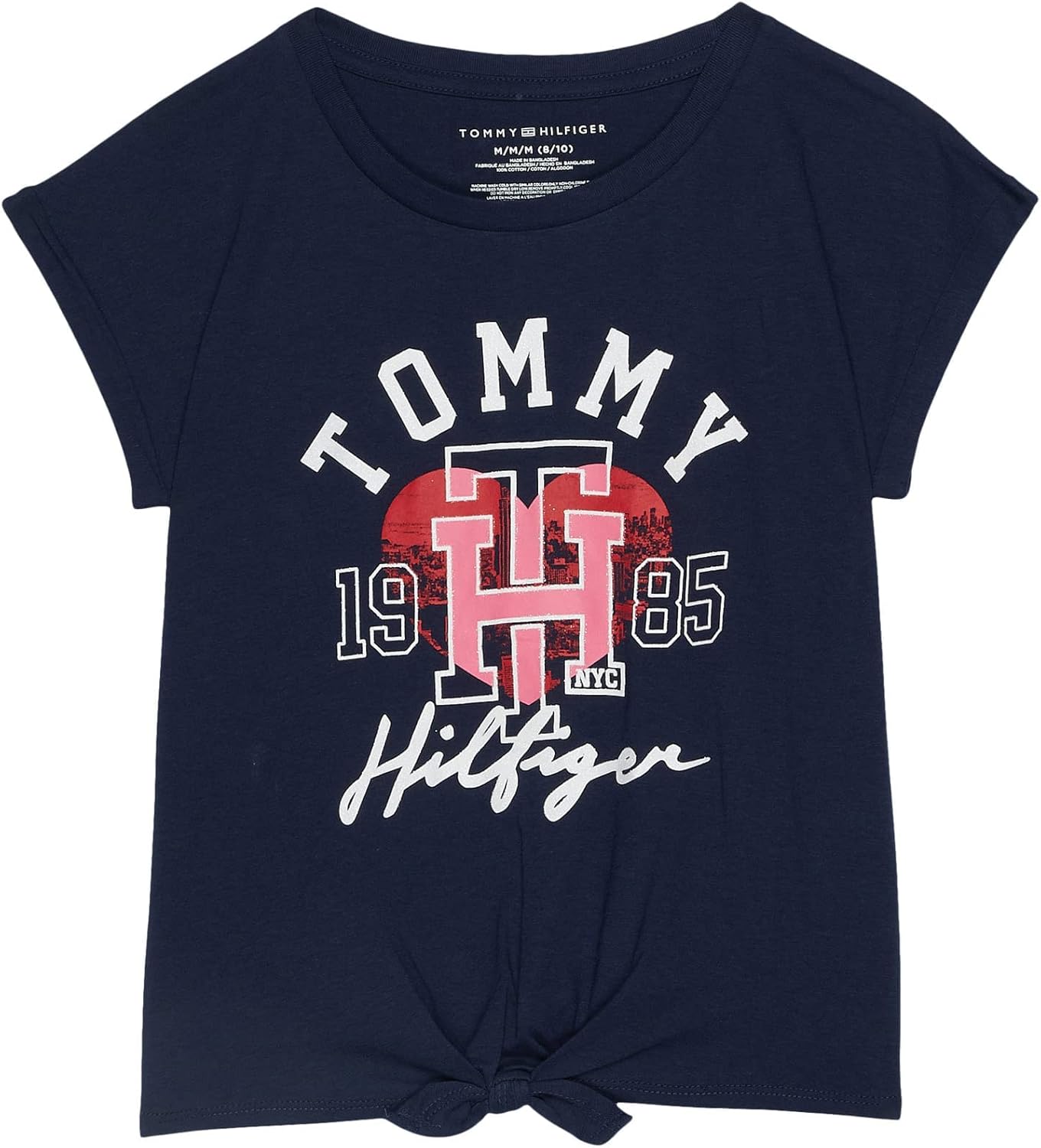 Camiseta Tommy Hilfiger para niñas de manga corta con nudo de corbata y interior sin costuras