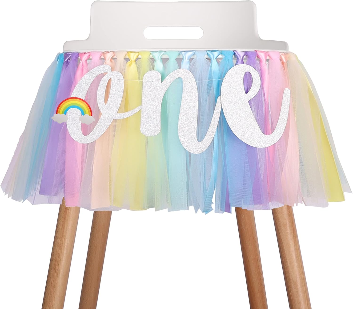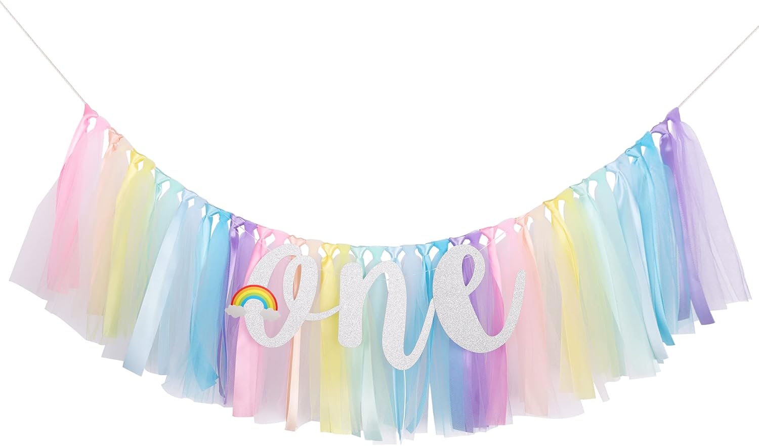 Bandera para silla alta de bebé con arcoíris pastel - Bandera de tirado para tema de fiesta, Guirnalda de tela para silla alta, Bandera para primer cumpleaños, Accesorios para fotos, Hecho a mano