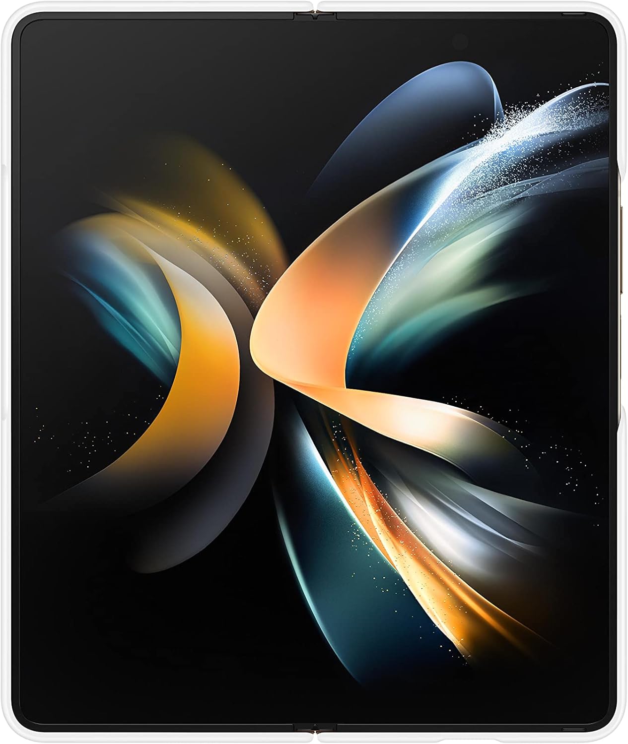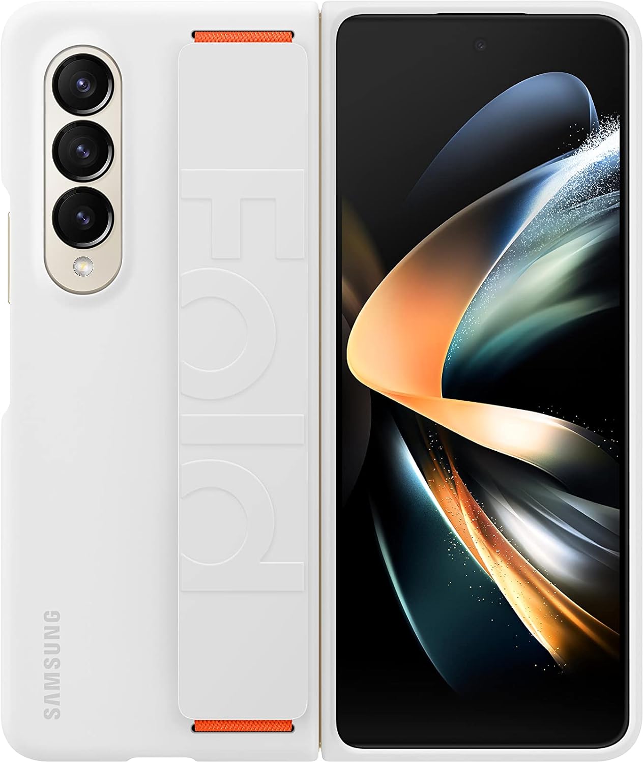 Funda de Silicona para SAMSUNG Galaxy Z Fold4, Cubierta Protectora con Correa de Dedo, Acabado Mate, Superficie Suave, Diseño Manos Libres, Versión EE. UU., Blanco