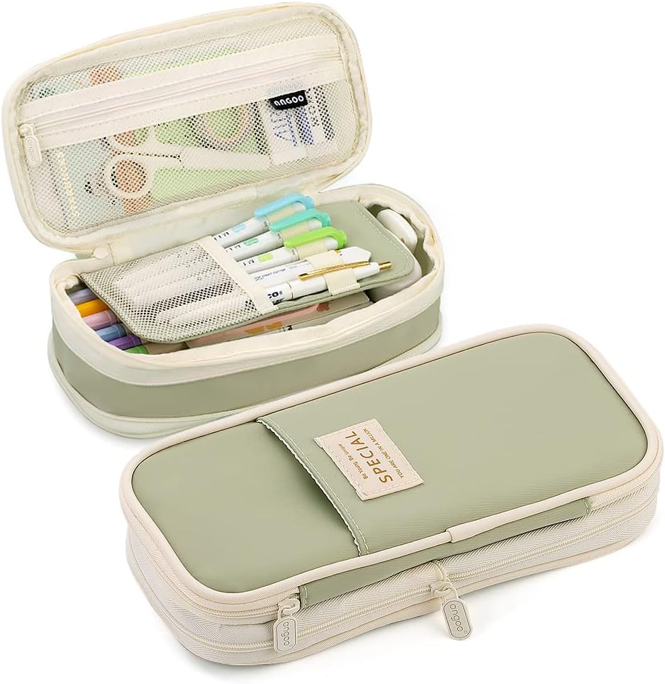 MAMUNU Estuche de lápiz expandible con compartimentos, Estuches de lápiz de gran capacidad, Bolsa de lápices para niños y adultos, Organizador portátil de material escolar, Bolsa de maquillaje y cosméticos, Verde