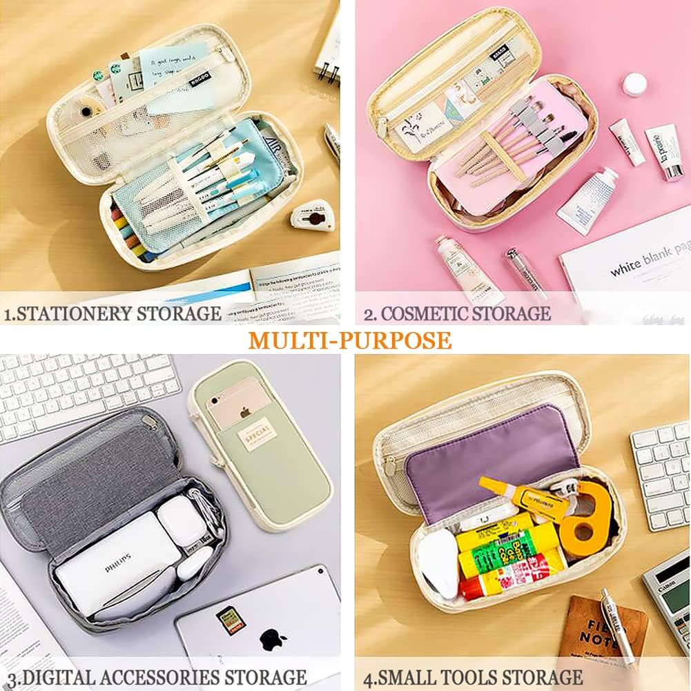 【Bolsas multifuncionales】Este estuche de lápices estético es para todos: estudiantes, adultos, universitarios, adolescentes. Se puede usar como bolsa de almacenamiento de material escolar, estuche de suministros de oficina, bolsa de cosméticos y bolsa de arte. Puede usarse ampliamente en oficina, escuela, hogar y viajes.