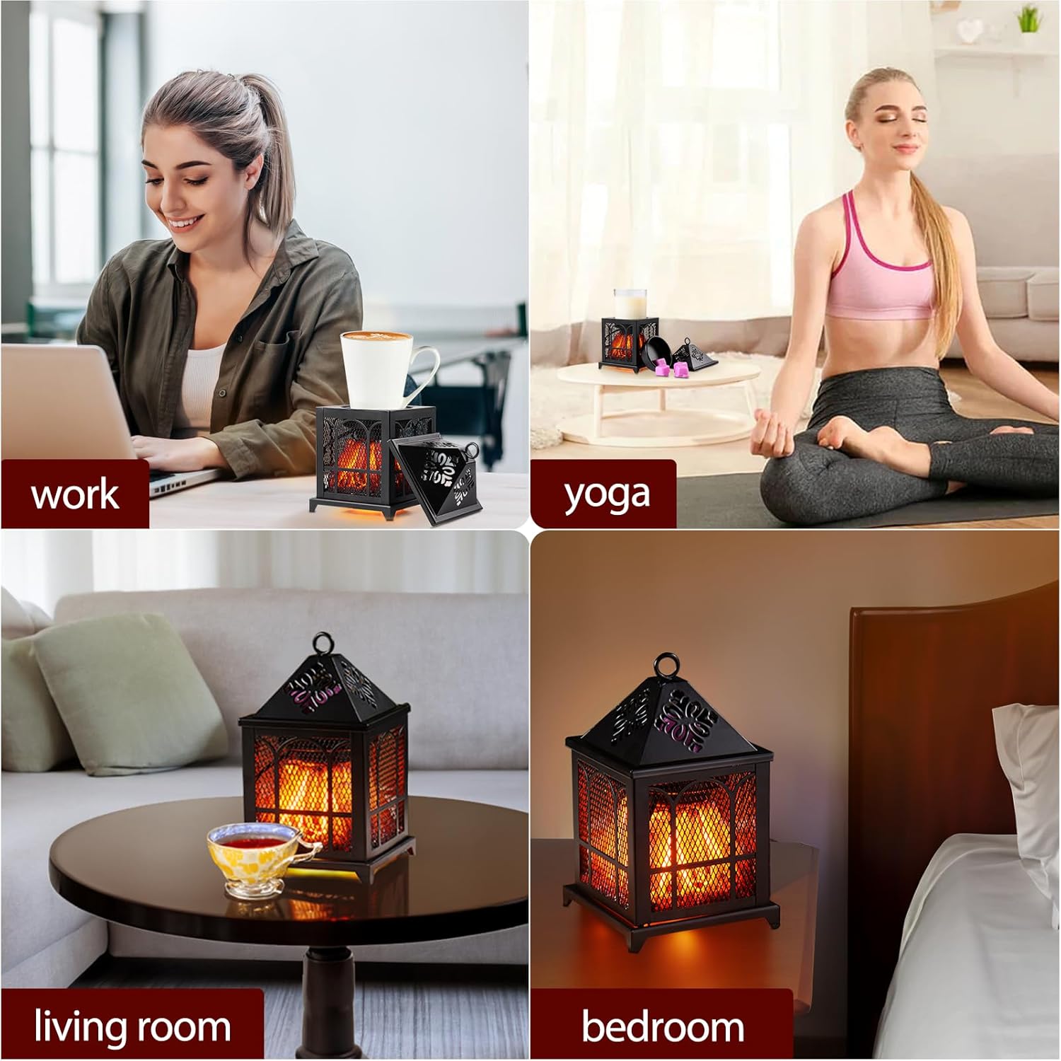 El Acogedor Brillo de una Chimenea - ¿Por qué la cómoda radiancia de la chimenea se satisface solo con su fragancia? Este calentador adopta un diseño realista de chimenea LED, sin llamas abiertas, y mientras lo miras, se siente muy descompresivo. ¡Solo enchufa y disfruta!