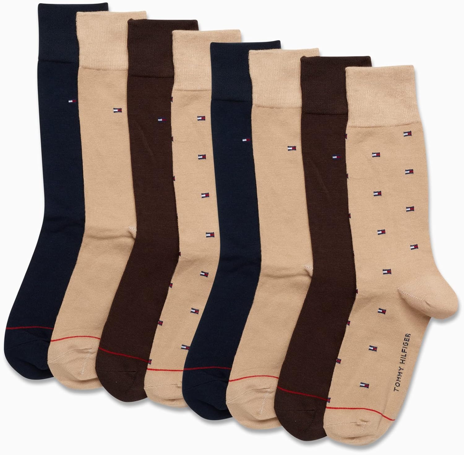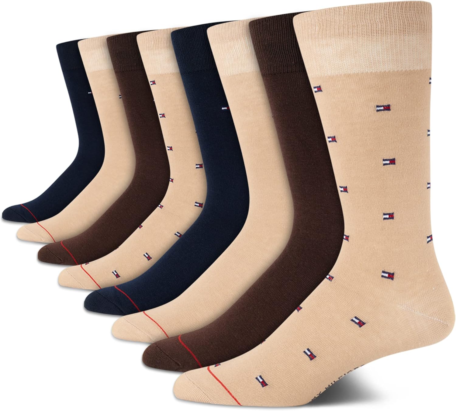 Tommy Hilfiger Mens Dress Socks - 8 Pack Stylish Crew Socks for Men, Breathable, Moisture-Wicking & Stretchable, Size 7-12