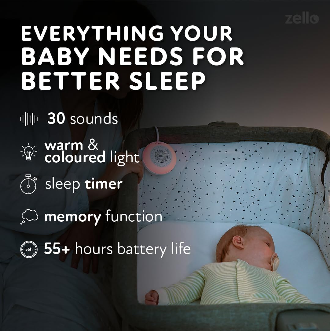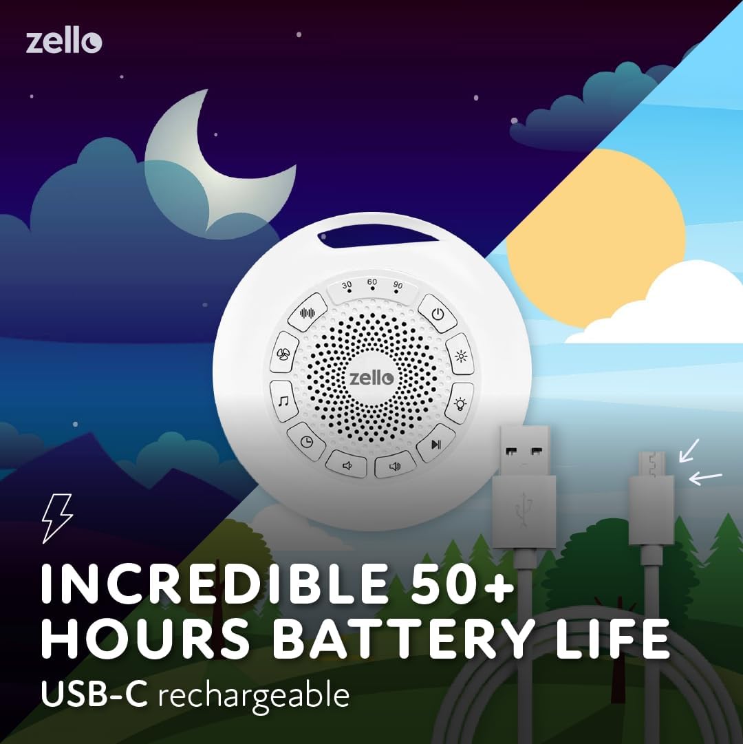 Zello | Máquina de Ruido Blanco Portátil Pro Max | 30 Sonidos | 55+ Horas de Batería | Luz Nocturna de 7 Colores | Bloqueo Infantil | Temporizador de Sueño | Recargable por USB | Ayuda para Dormir del Bebé | Máquina de Sonido para Dormir