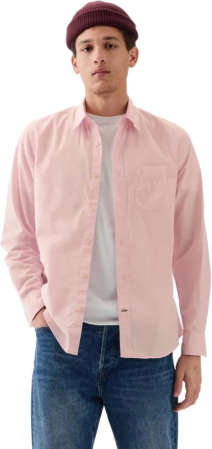 GAP Men's Standard Fit Stretch Poplin Long Sleeve Button Down Shirt