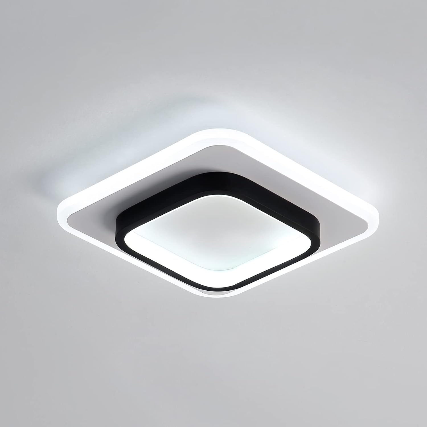 Lámpara de Techo LED 22W Moderna, Lámpara de Techo Cuadrada de 9.5 Pulgadas, Luz Blanca Fría 6500K para Dormitorio, Pasillo, Oficina, Cocina, Comedor, Entrada (Negro y Blanco)