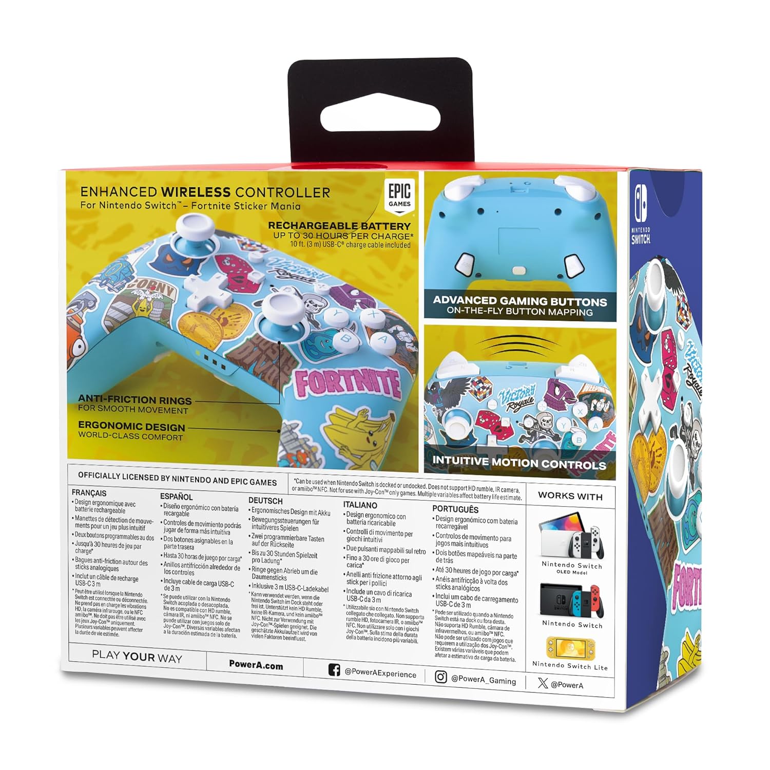 PowerA Enhanced Wireless Controller for Nintendo Switch/Switch 2 / Switch Lite/OLED Model - Fortnite Sticker Mania - Gamepad, game controller, Officially Licensed