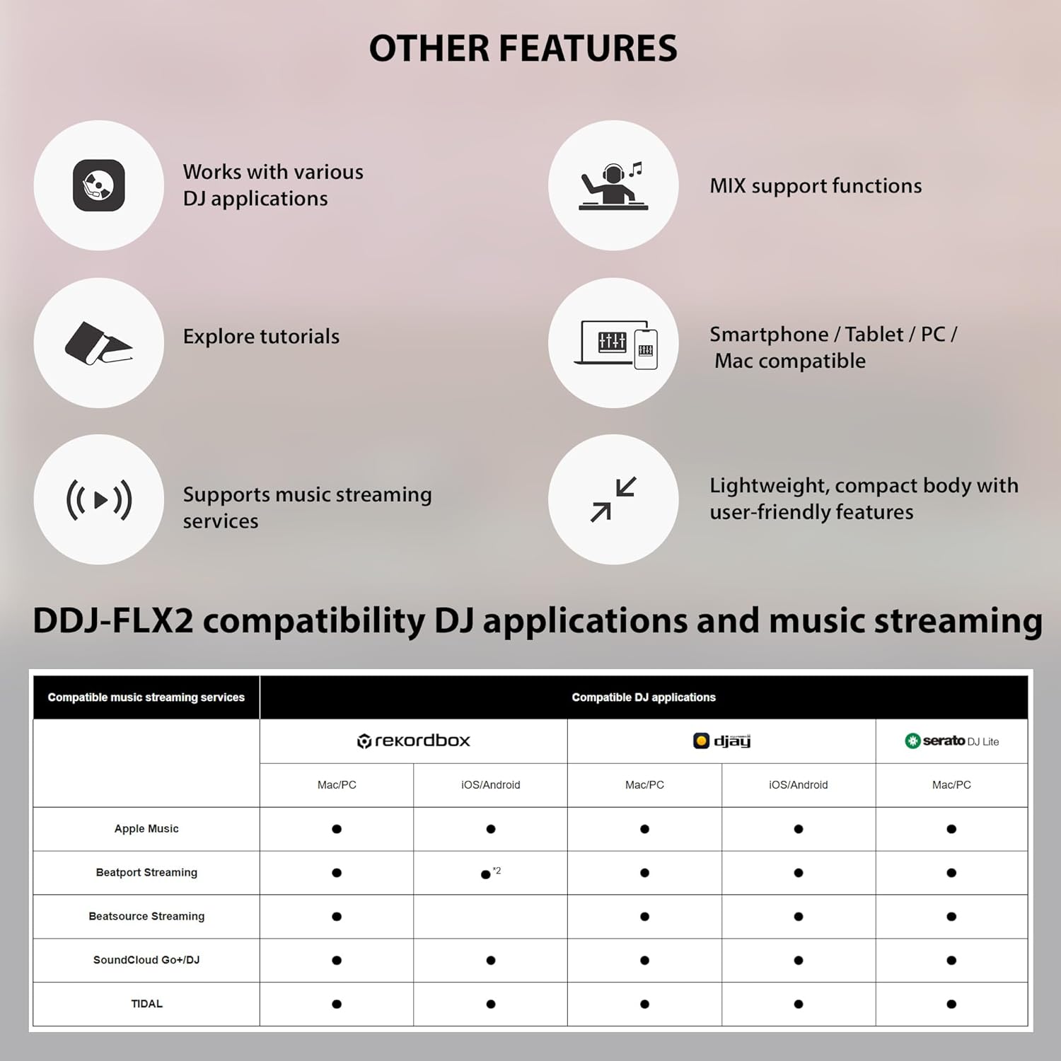 COMPATIBLE WITH POPULAR DJ SOFTWARE: The DDJ-FLX2 works with well-known DJ apps like rekordbox, djay, and Serato DJ Lite, making it easy for both beginners and more experienced users to get started