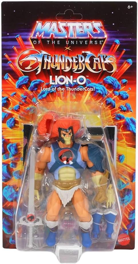 This Lion-O action figure is a thrilling crossover of the worlds of Masters of the Universe and ThunderCats, two iconic action figure brands from the 1980s whose legacies continue