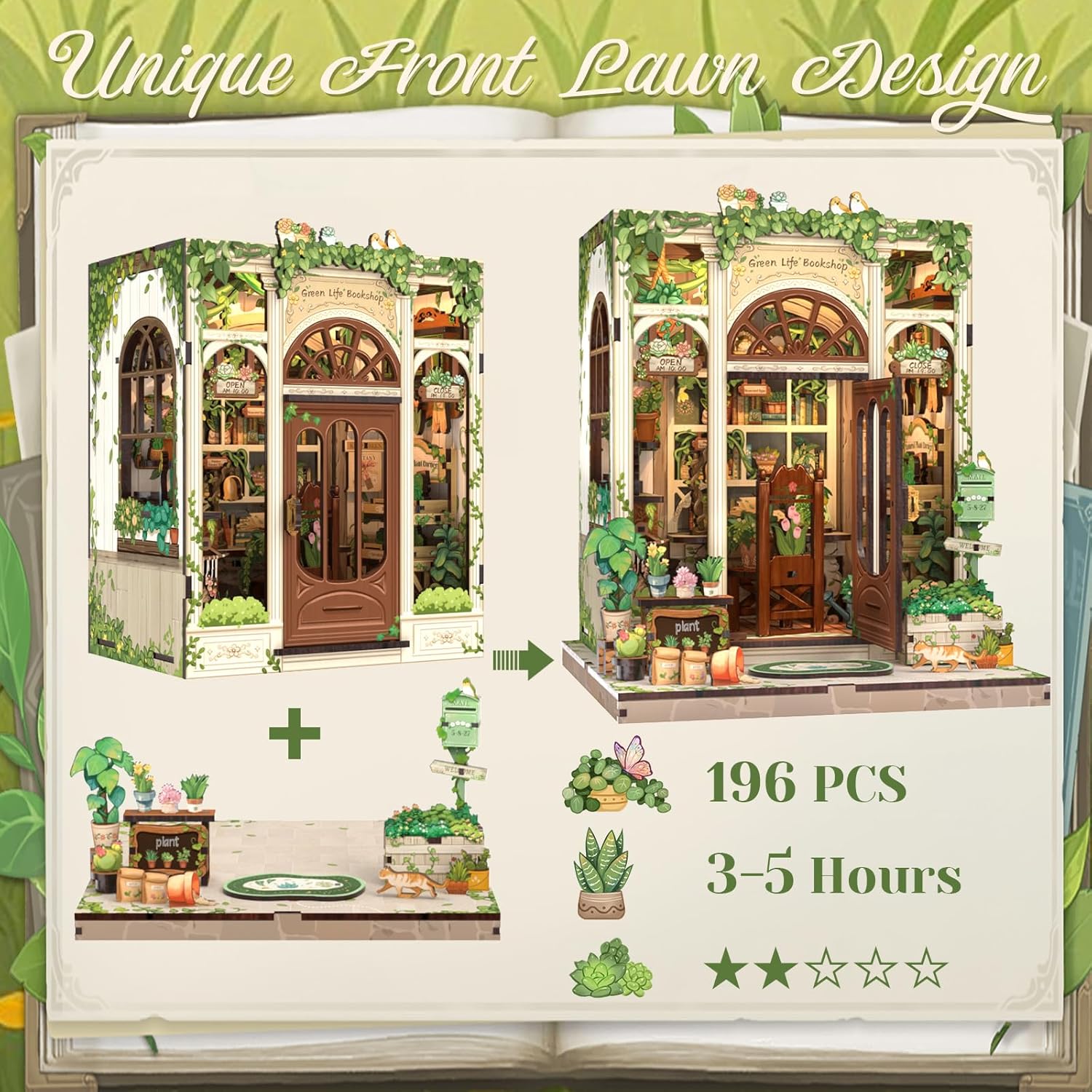 CUTEBEE Book Nook Kit - DIY Miniature House Dollhouse Kit for Adults and Teens, Booknook Tiny House Bookshelf Decor 3D Wooden Puzzle, Gifts for Family Friends (Green Life Bookshop)