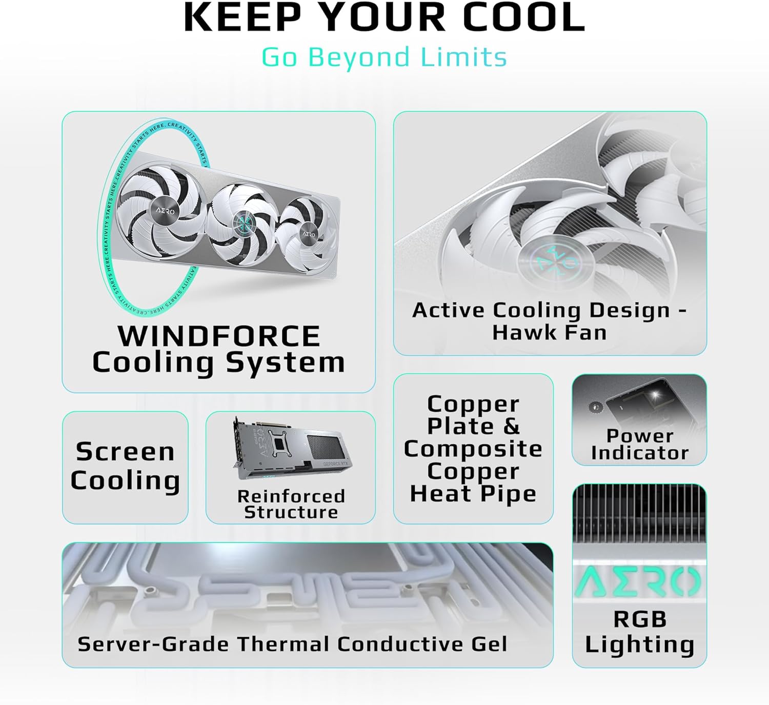 Ahead of its time, ahead of the game is the GIGABYTE GeForce RTX 5070 AERO OC 12G Graphics Cards. Powered by NVIDIA's new RTX architecture, the GIGABYTE GeForce RTX 5070 AERO OC 12G brings stunning visuals, amazingly fast frame rates, and AI acceleration to games and creative applications with its enhanced RT Cores and Tensor Cores, along with a staggering 12 GB of GDDR7 memory.