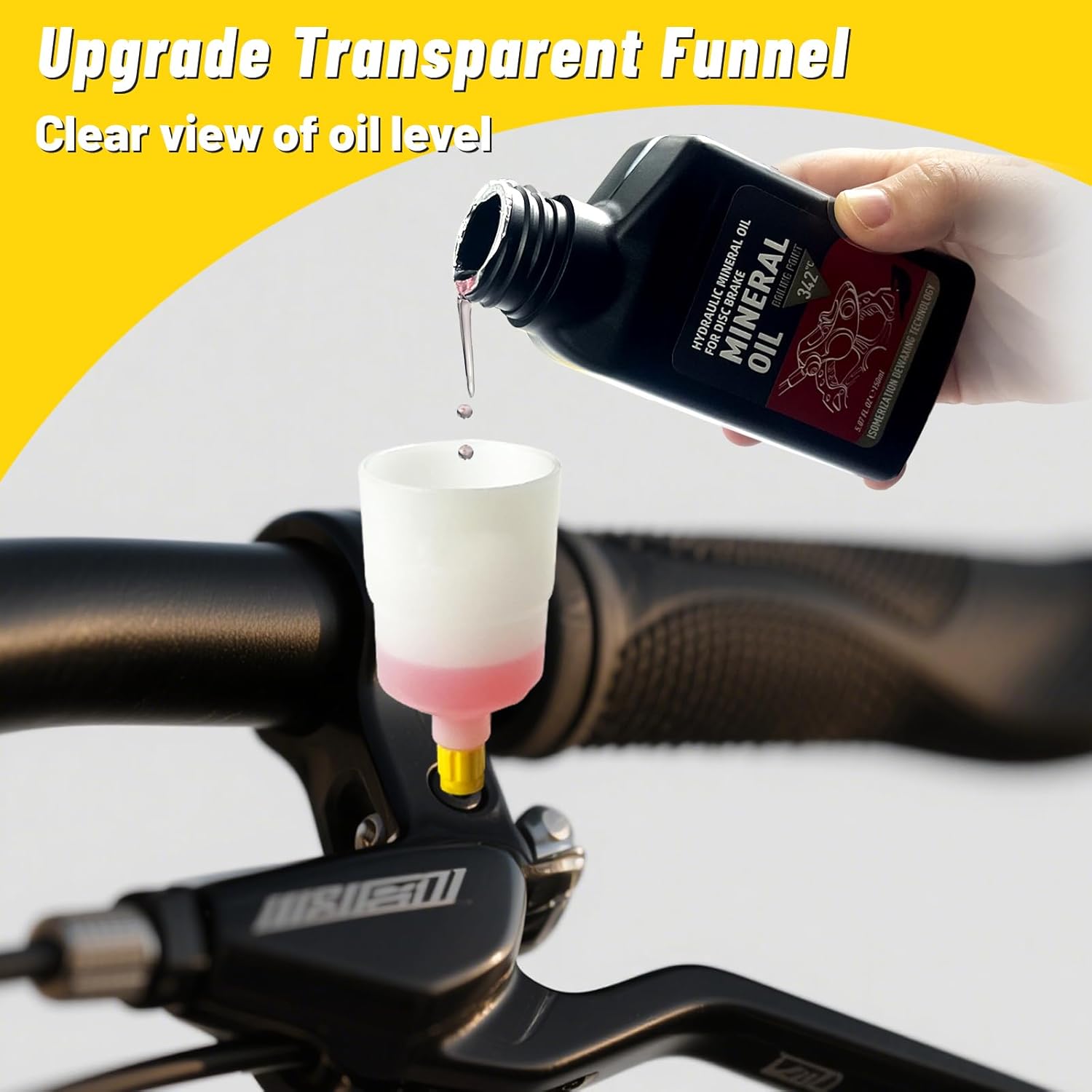 150ml Mineral Oil Brake Fluid: Equipped with 150ml high performance mineral oil brake fluid, ensures uniform and responsive braking force.150 ml large capacity and easy portability, perfect for multiple bike maintenance or quick refills on the go