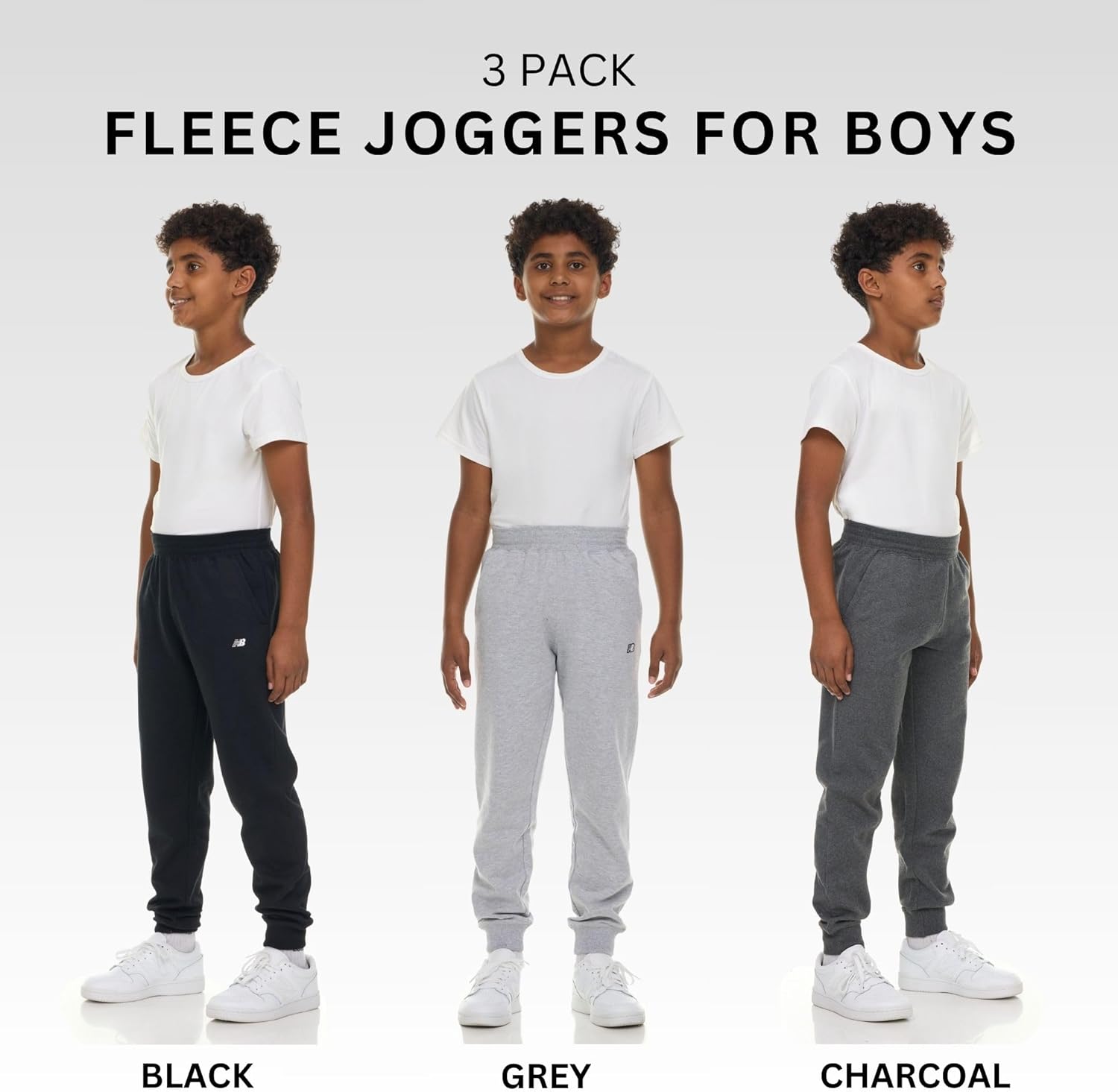 New Balance Boys Fleece Jogger 3 Pack – Kids Soft Cotton Blend Fleece Sweatpants with Pockets, Athletic Fit, Sizes 4-20