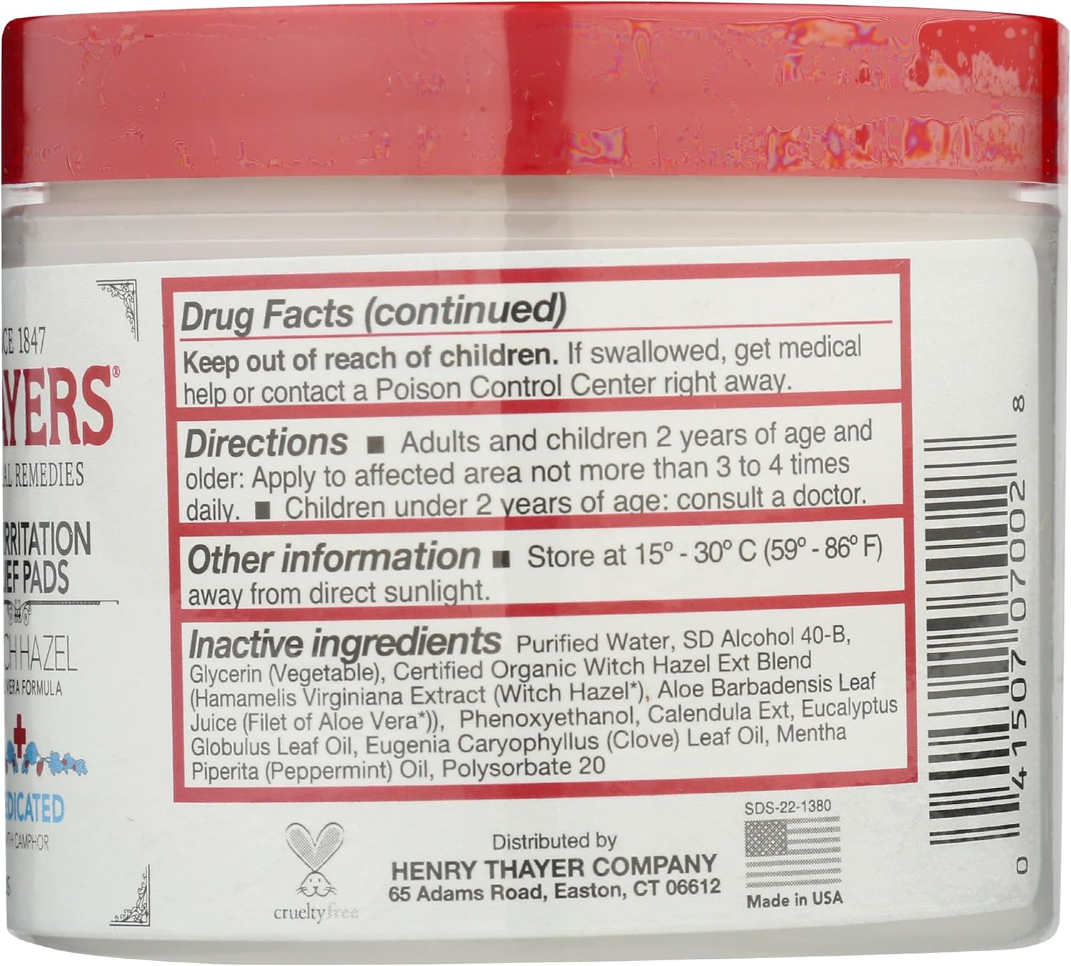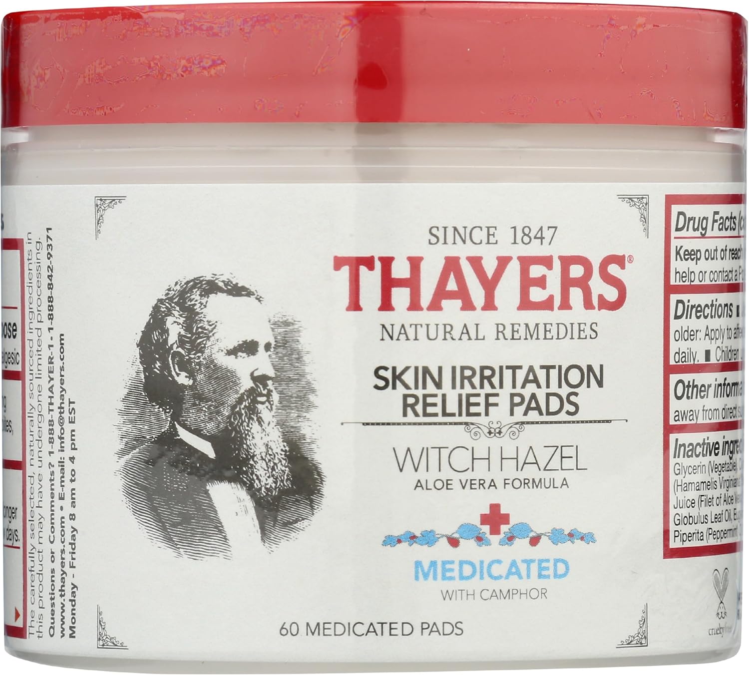 Thayer's Medicated Super hazel pads with aloe Vera formula are ready to bring heroic healing to itches, rashes, burns, insect bites and other irritations anytime, anyplace. Suffused with Thayer's' uniquely soothing formula, medicated Super hazel with aloe Vera formula is an essential first aid kit component.