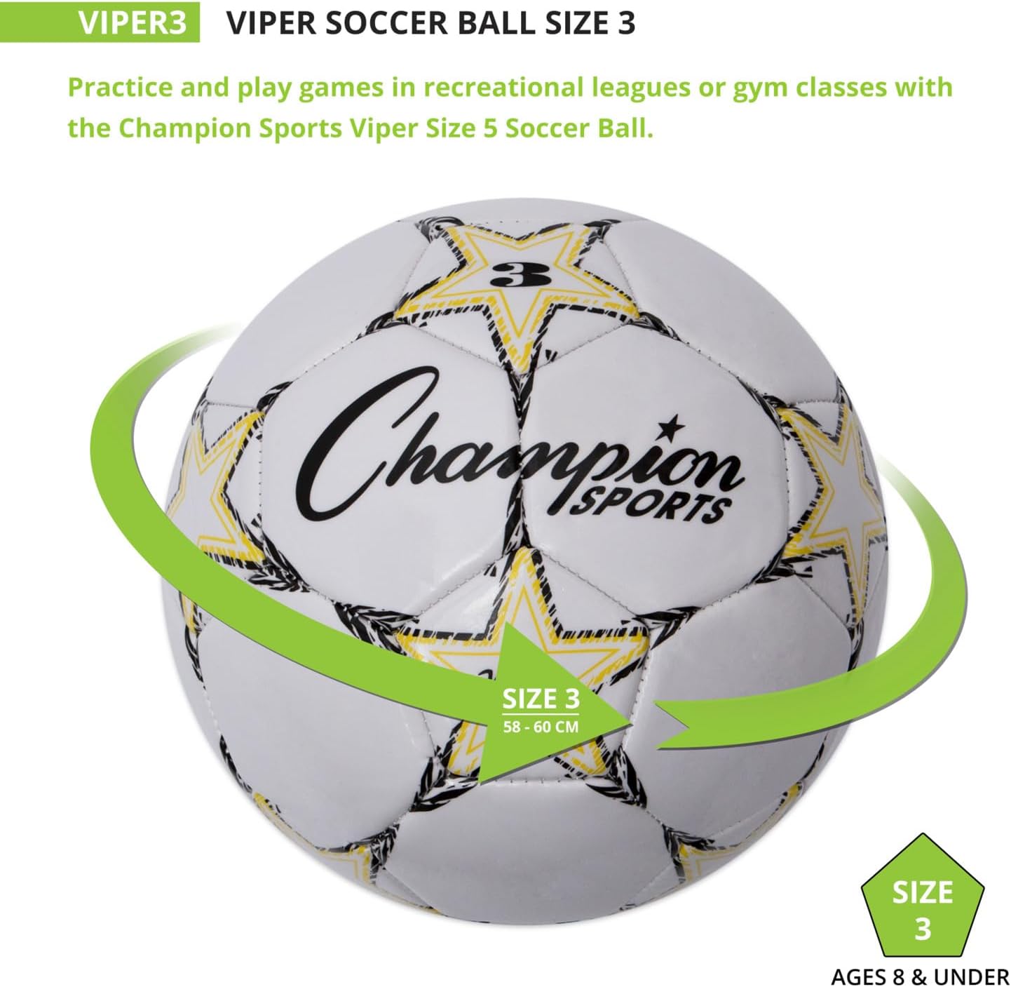 Champion Sports Viper Soccer Ball – Sizes 3, 4, 5 – Soft Touch TPU Cover, Durable Butyl Bladder, Youth & Adult Training Ball for Indoor & Outdoor Play, Multi-Color Design