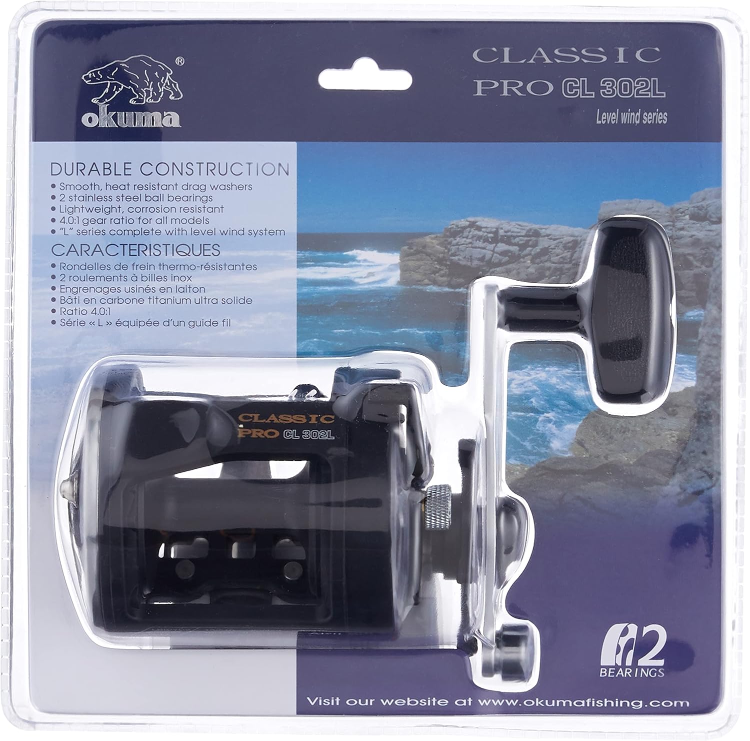 Carrete de pesca CL-302L-CL Classic Pro Graphite Trolling Reel Clam Pack (Pequeño, Negro)