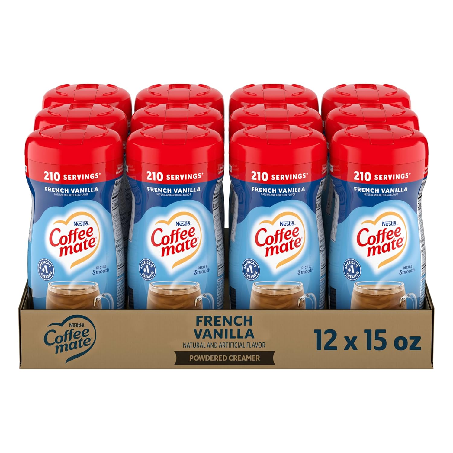 Nestle Coffee mate Coffee Creamer, French Vanilla, Non Dairy Powder Creamer, 15 oz Canister (Pack of 12)