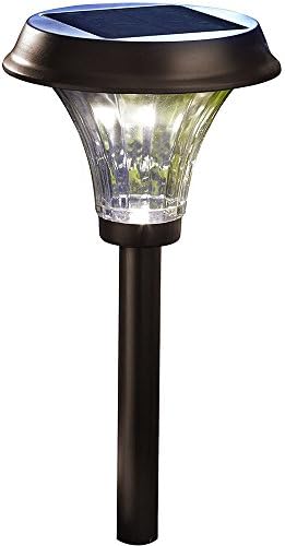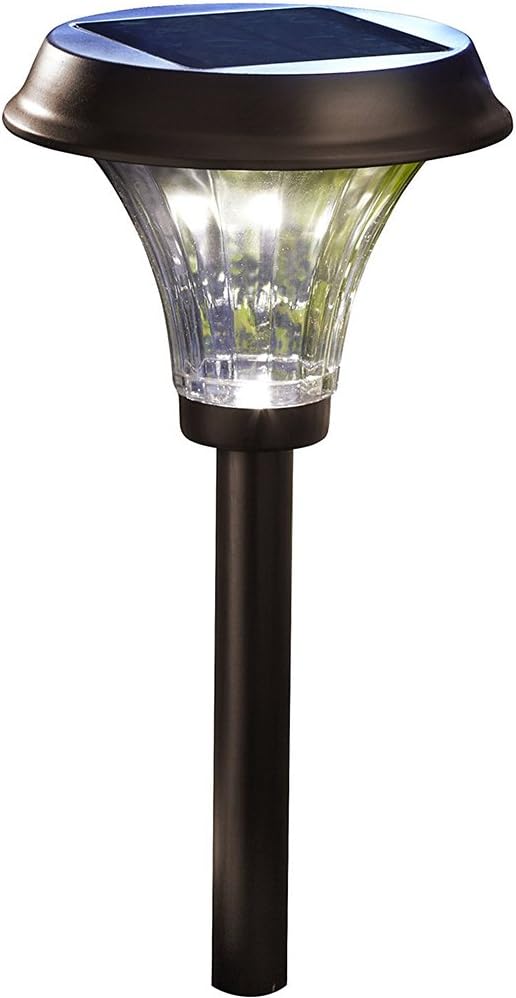 elegantes luces solares para senderos de jardín: con un elegante acabado en bronce acanalado y una gran lente de vidrio con diseño acanalado para una salida de luz óptima, esta lámpara LED solar para camino o carril es un accesorio inestimable para iluminar un camino o carril oscuro.