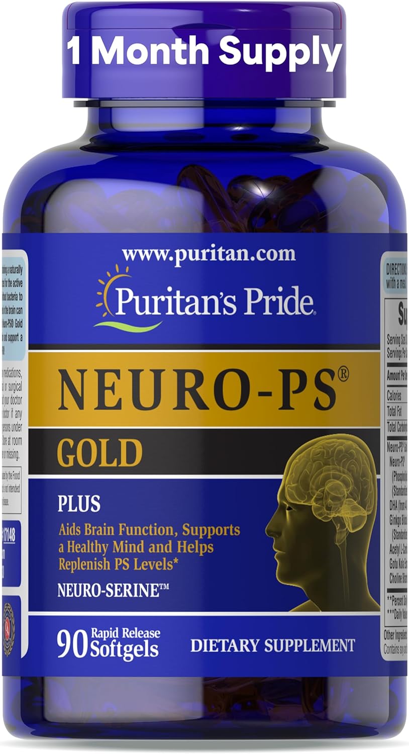 Help keep your mind sharp with Puritan's Pride Neuro-PS® Gold!* This dietary supplement combines the power of Phosphatidylserine and Ginkgo Biloba to support brain function and overall cognitive health.* Whether you’re young or young at heart, prioritizing your brain health is always a wise decision. Neuro-PS® Gold is specifically formulated to assist with occasional mild memory problems associated with aging, helping you maintain clarity and focus.* Phosphatidylserine (PS) is a vital nutrient naturally found in the brain, playing a key role in neurotransmitter release and cognitive function, but levels can decrease as we age—making supplementation essential.* Ginkgo Biloba is well-known for its benefits in supporting mental alertness to help you stay sharp throughout your day.* With 90 rapid release softgels in each bottle, you’ll enjoy a convenient one-month supply. *These statements have not been evaluated by the Food and Drug Administration. This product is not intended to diagnose, treat, cure or prevent any disease.