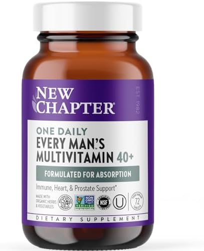 New Chapter Men’s Multivitamin 40+, Extra B6 & B12, D3, Vitamin C & Zinc, Immune, Heart, Cellular Energy, and Brain Health, Gentle on The Stomach, One Daily, Non-GMO, Gluten-Free, 72 Tablets