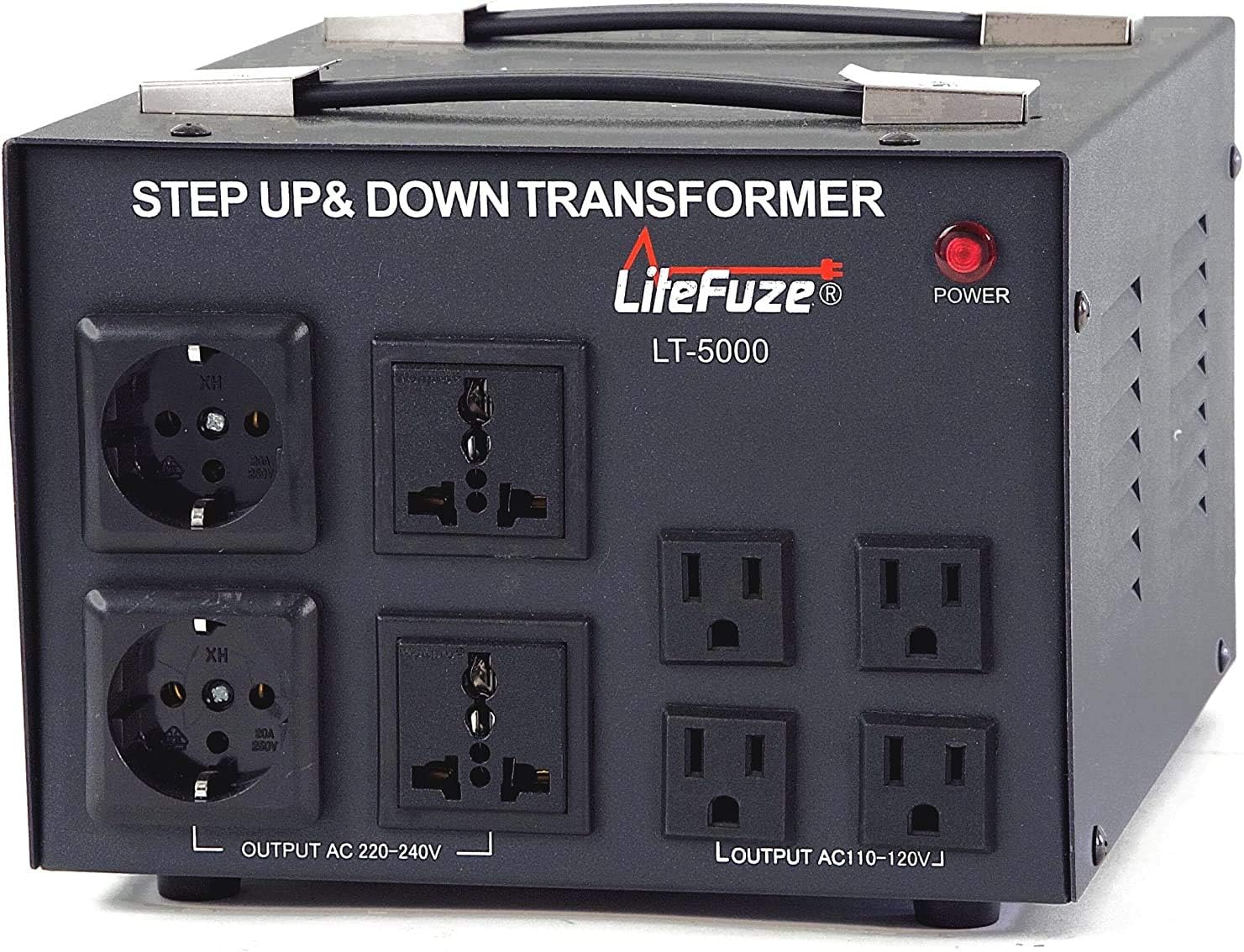 LiteFuze LT Series 5000 Watt Voltage Converter Transformer Step Up/Down - 110v to 220v / 220v to 110v Power Converter - Fully Grounded Cord - Universal Socket, CE Certified