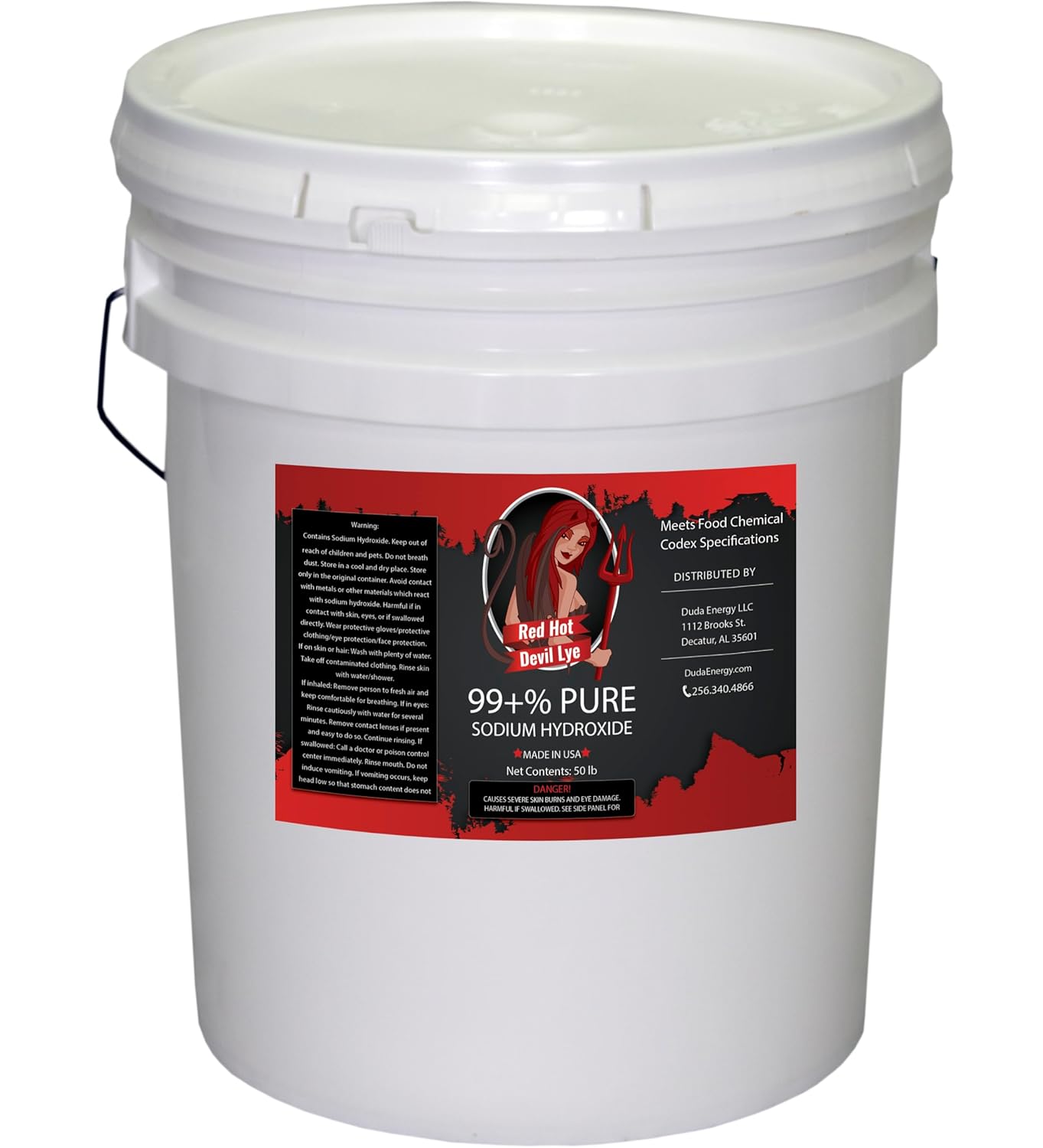 50 lb Red Hot Devil Lye Sodium Hydroxide Meets Food Chemical Codex High Grade Caustic Soda Beads