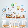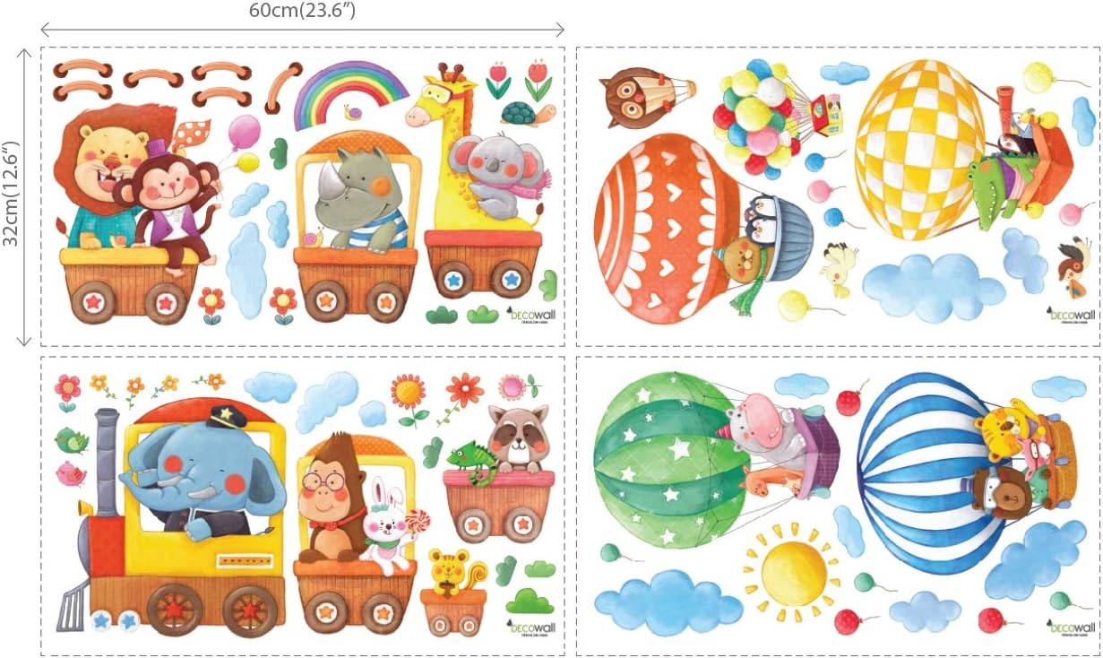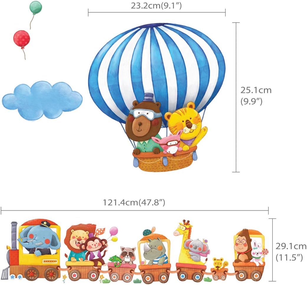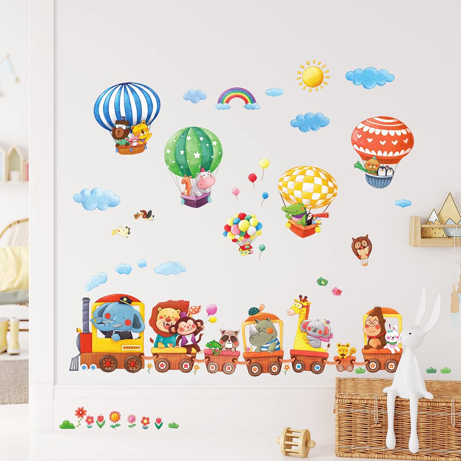 DECOWALL DA-1406 - Pegatinas de pared para niños con tren de animales y globos aerostáticos, adhesivos de pared removibles para niños, dormitorio, sala de estar