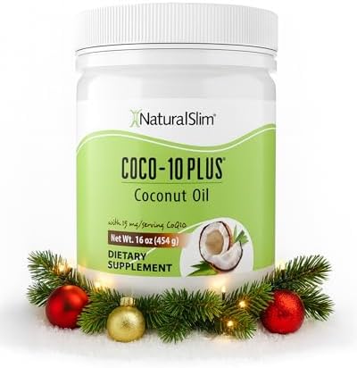 NaturalSlim Coco-10 Plus - Mezcla de aceite de coco orgánico y coenzima Q10 (Co Q 10, ubiquinona) | Mejora la salud, ayuda a aumentar la energía y apoya la tiroides | Mezclar con batido, café | Sin sabor, 16 oz