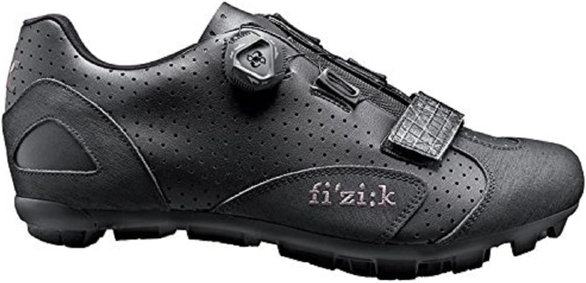 The Fizik MTB M5 Uomo BOA Cycling Shoe is handmade in Italy. The outside is highly durable laser-perforated Microtex mixed with Scratch Resistant Leather. Featuring the "fi'zi:k Cycling Insole" and Boa IP1 Closure System. The Boa IP1 is revolutionarily simple and fast to use for a perfect fit with minimal extra adjustment time. These shoes are lightweight, stiff with a Nylon Carbon Reinforced Outsole; comfortable enough to get to the top of your mountain, and all the way home. Available in Black/Grey.