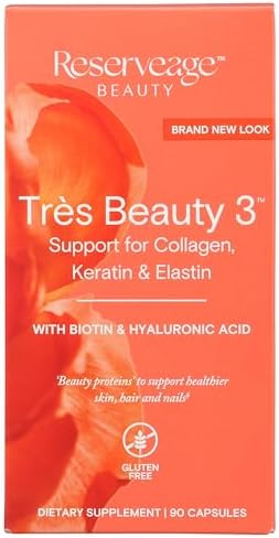 Reserveage Nutrition - Tres Beauty 3 - Supplement for Hair Growth, Skin Care & Nail Care - Collagen Supplement with Keratin & Biotin - Gluten Free - 90 Capsules (30 Servings)
