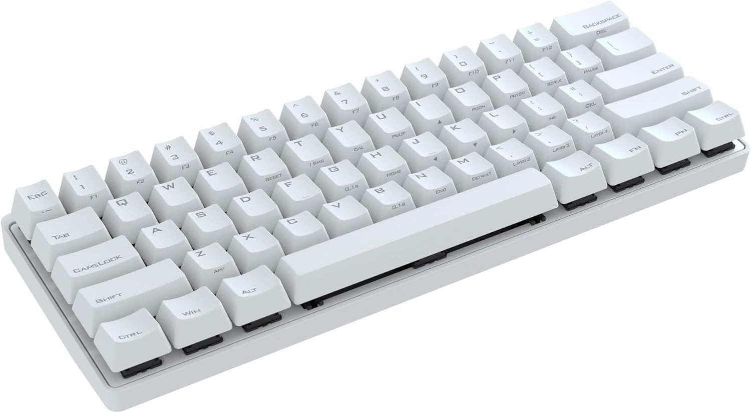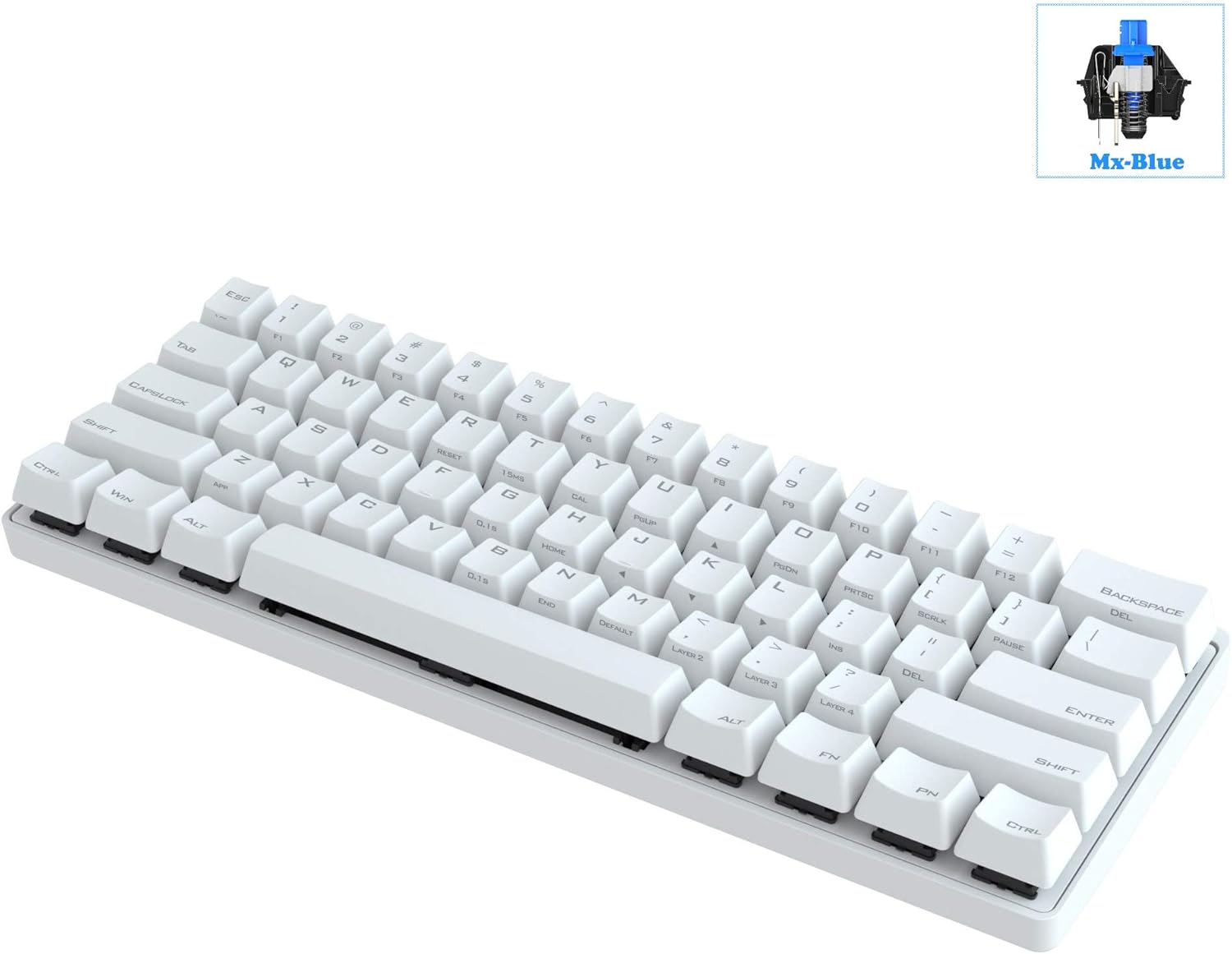 Pok3r 60% Ultra Compact Mechanical Gaming Keyboard - KBC Poker 3-61 Keys PBT Laser Etched Keycaps - PC/Mac/Linux - Programmable [Metal Casing] Clicky (Cherry Mx Blue, White)