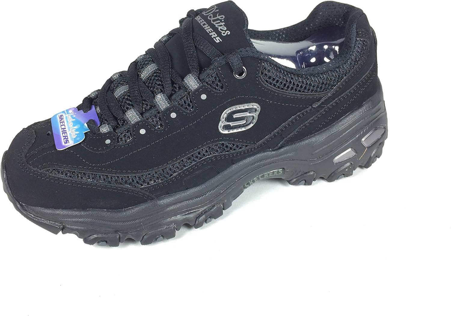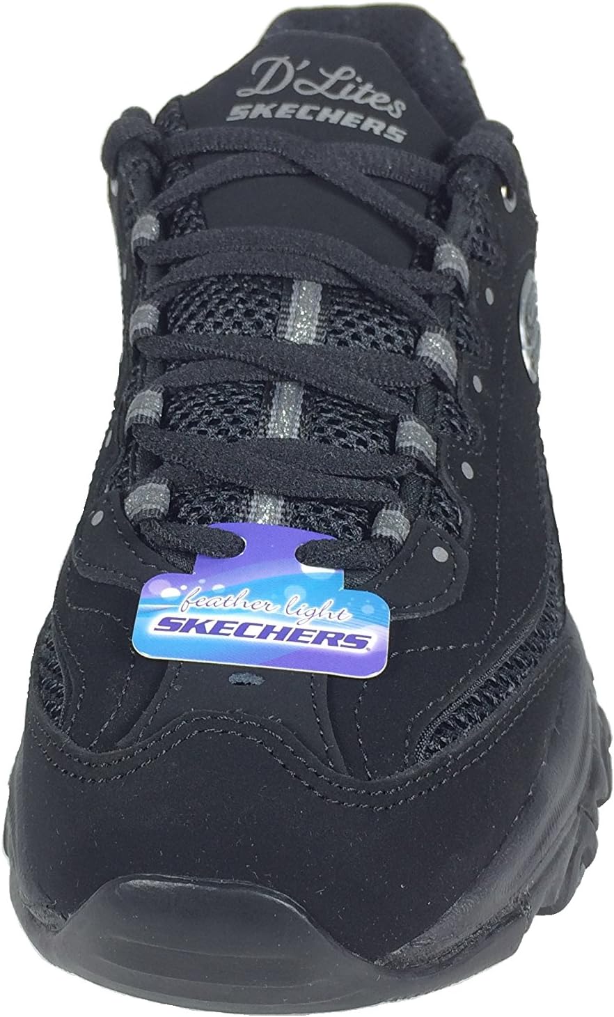 Skechers Women's D'Lites Original Lace-Up Sneaker, Black/Black, 8.5 M US