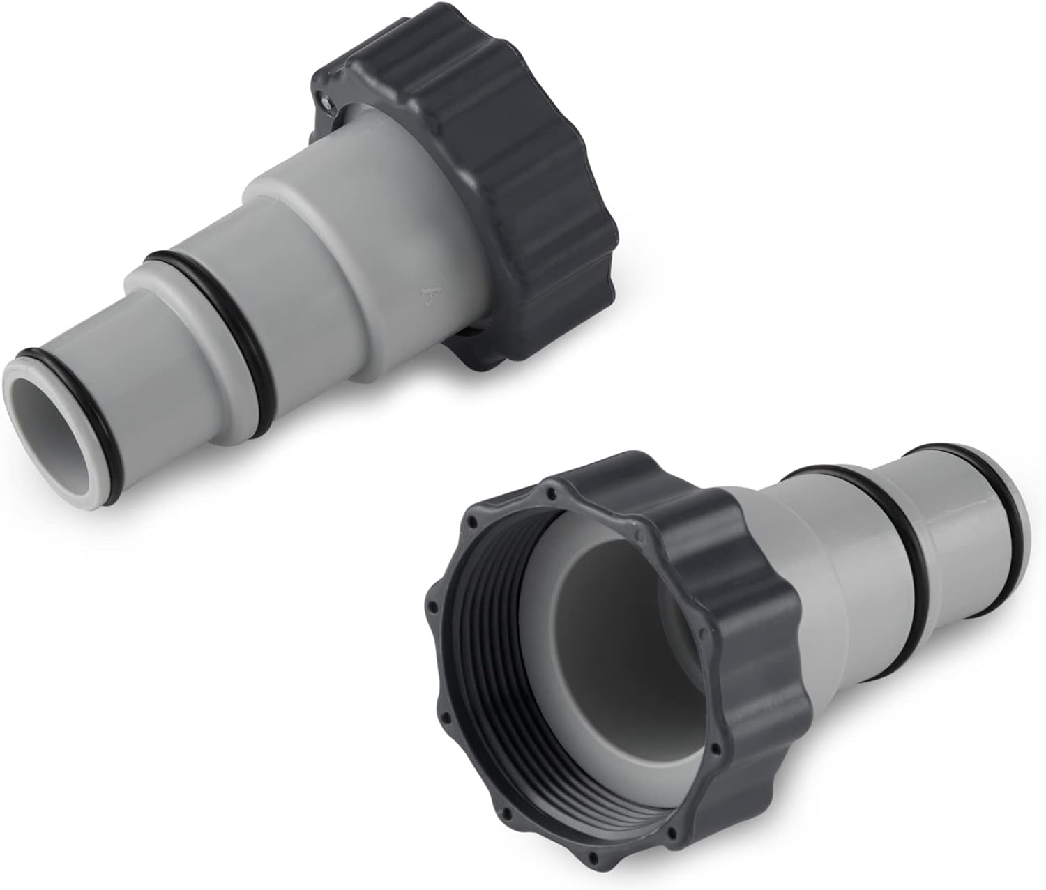 Even our durable Intex pumps need a little maintenance after a few years of excellent operation. Keep your pump running at top efficiency with this pair of Intex Replacement Hose Adapter A with Collars. This is a genuine Intex OEM replacement part so you know it will keep your pool safe and working properly. This adapter converts threaded hoses to clamp style hoses and 1.5 and 1.25 hoses for Intex pool sets. It fits all Intex 4000, 2500, 2000 and 1500 gallon per hour filter pumps that use threaded hose connections, as well as Intex chlorine generators and salt systems that use threaded hose connections.