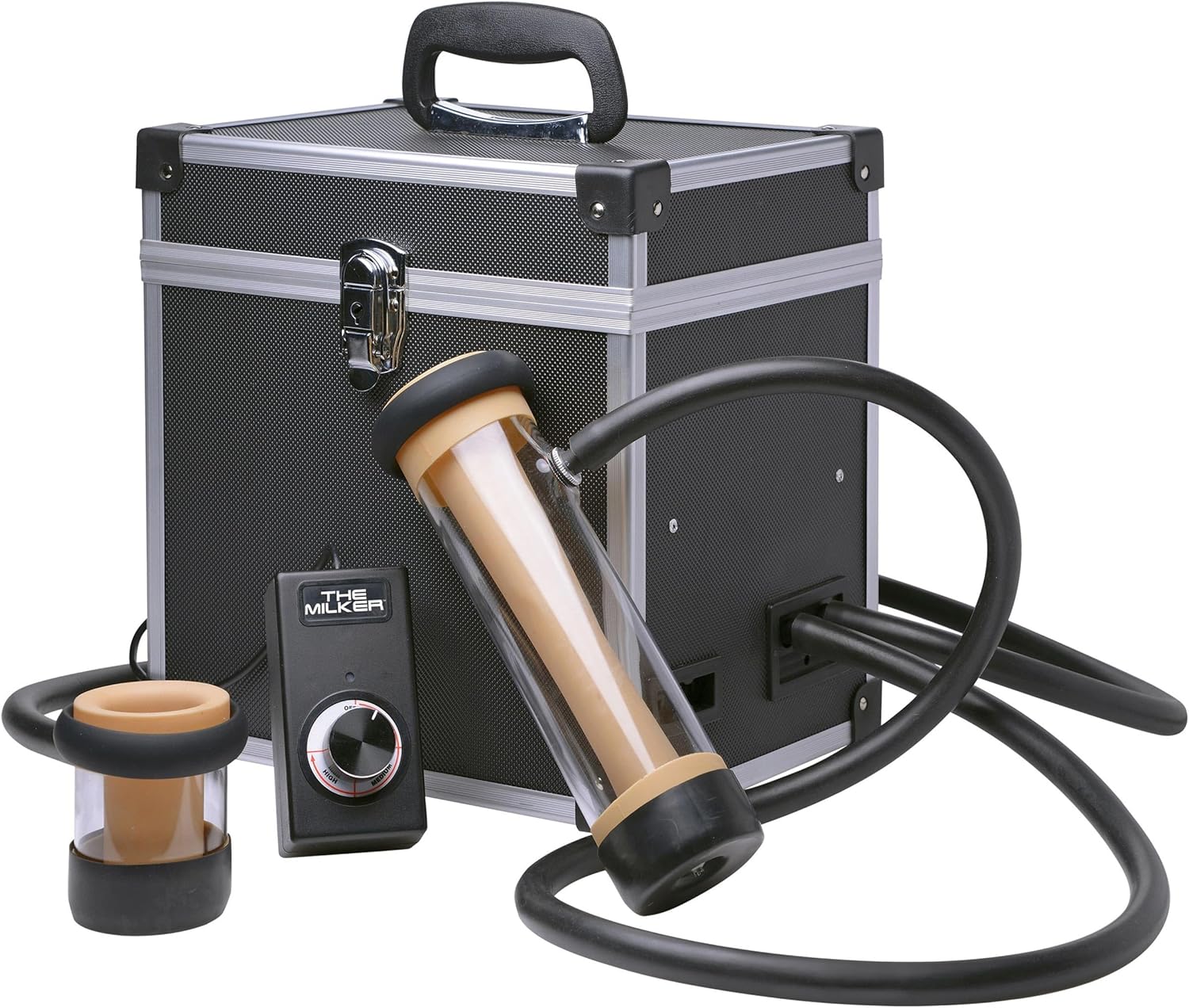 ¡Nos complace presentar nuestra nueva máquina Milker Automatic Deluxe Stroker! Diseñada para hacer todo el trabajo duro por ti, esta máquina del amor está diseñada específicamente para acariciar y aspirar automáticamente, con dos cilindros para una variedad de sensaciones. Esta máquina de varias velocidades aloja discretamente en la parte superior todo lo que necesitas. Simplemente conecta la manguera al cilindro y usa el dial para controlar qué tan rápido o lento quieres que vaya. Se incluyen dos cilindros. El primero está especialmente diseñado para aspirar el eje, mide casi 9 pulgadas de largo y está forrado con goma flexible para un sellado hermético. El cilindro más pequeño es ideal para un placer más específico, como la cabeza del pene o incluso el clítoris o los pezones. Úsalo solo o con un compañero, para los preliminares, para jugar en solitario o para cualquier cosa que se te ocurra. Diseñada para ofrecerte lo último en estimulación orgásmica. Todos los accesorios se guardan fácilmente en el compartimento superior, que cuenta con un candado y 2 llaves para que puedas transportarlo con total discreción. Medidas: 11 pulgadas de largo, 8.25 pulgadas de ancho, 11.75 pulgadas de alto. Material: ABS, silicona, caucho natural, metal. Color: negro Nota: Incluye máquina, 2 mangueras, 3 tapones de manguera, 2 cilindros, mando a distancia, transformador AC/DC, cable de alimentación estadounidense e instrucciones.