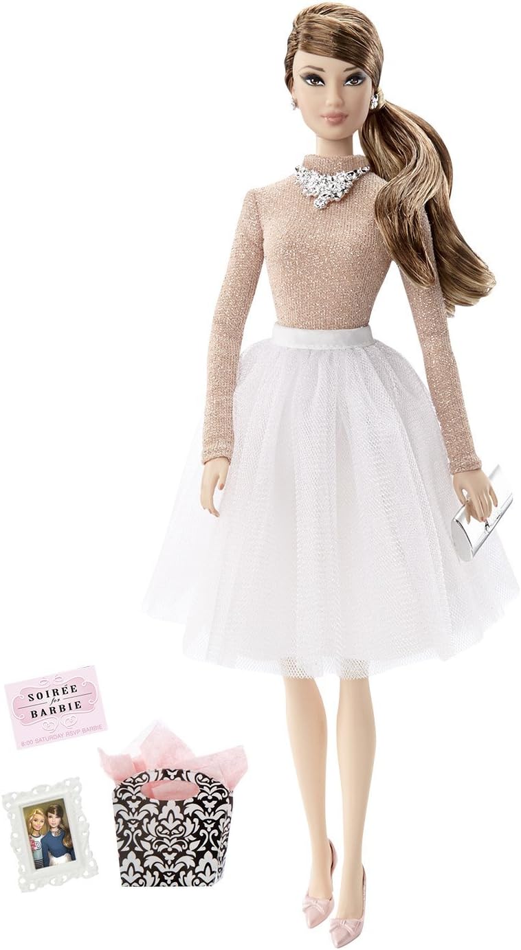 Siempre en el centro de atención, esta muñeca Barbie no cabe duda de que tiene «el look» inspirado en el glamour clásico y en los últimos looks que se pueden ver en Instagram @BarbieStyle. Preparada para una fiesta perfecta con sus amigas, la muñeca Barbie lleva una preciosa falda de bailarina completamente blanca, un top de punto reluciente de color rosa claro, un llamativo collar plateado, pendientes, bolso de mano y tacones. El «regalo» de su fiesta incluye una bolsa y un marco de regalo, además de una invitación a la fiesta. El maquillaje y las uñas impecables son el toque final, ¡haciendo que esta belleza ilumine cualquier fiesta!