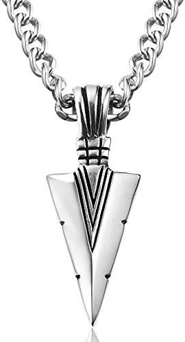 Besteel Jewelry Stainless Steel Arrowhead Pendant Necklace for Men Biker Punk 24'' Chain