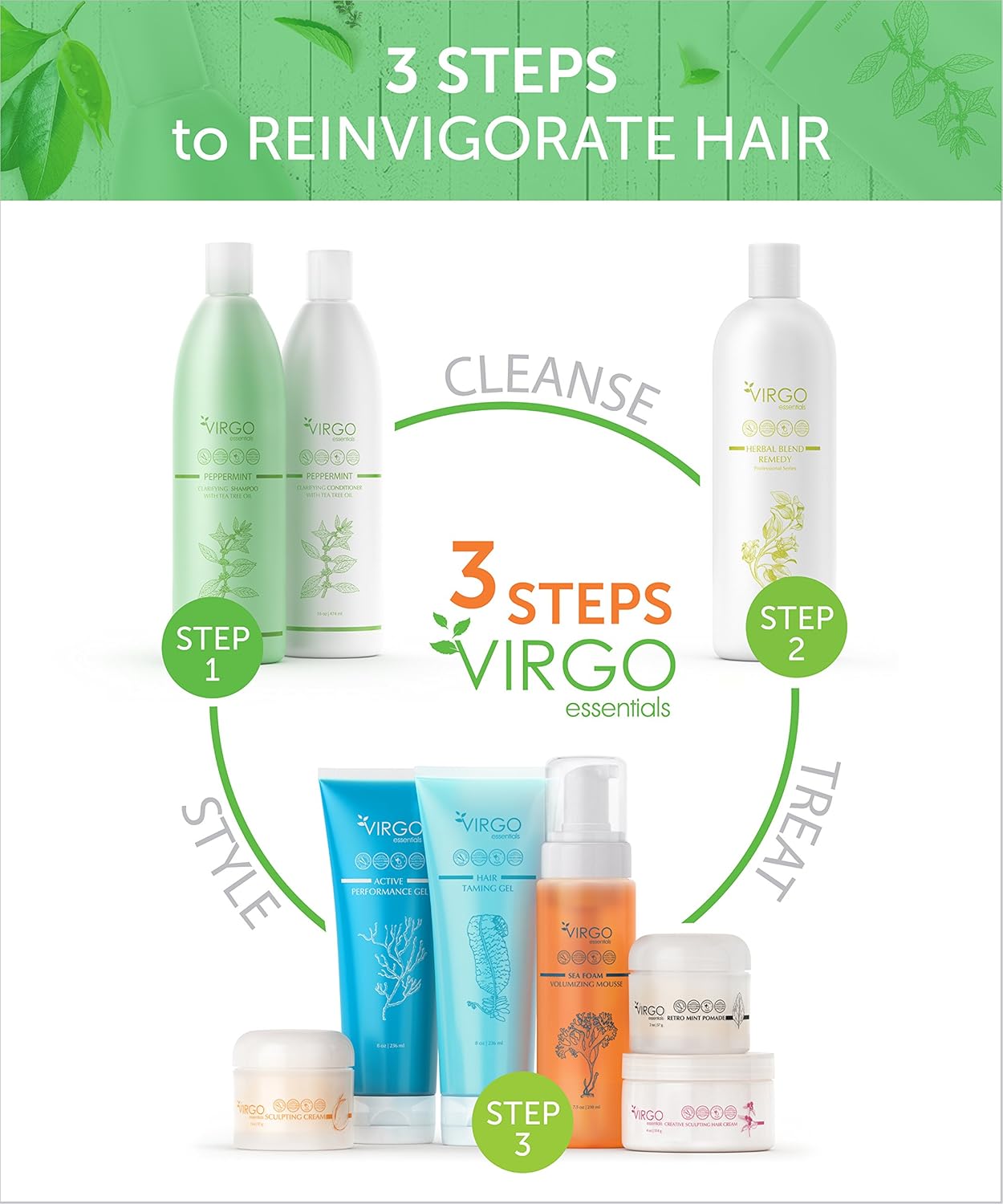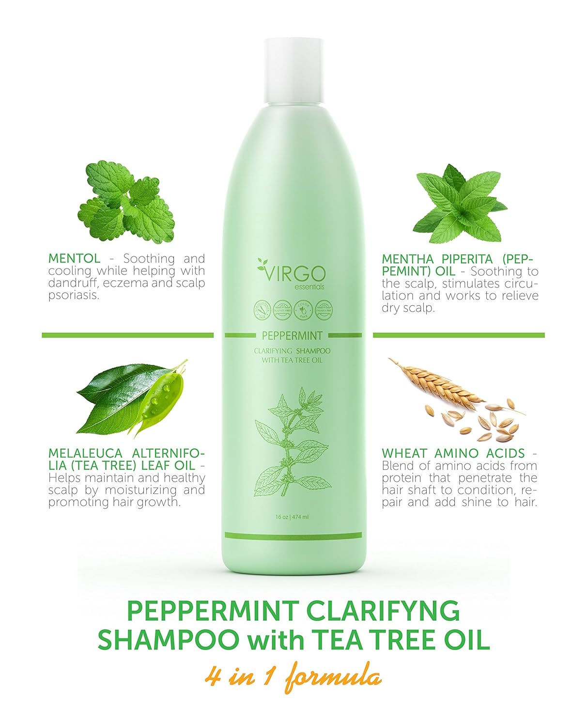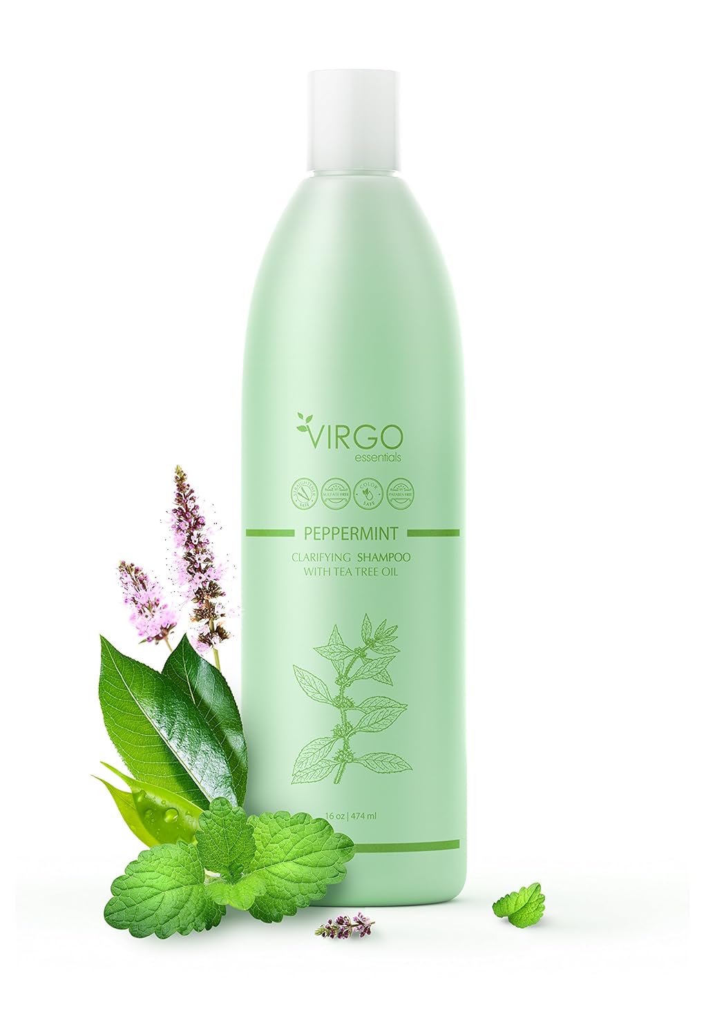 Virgo Essentials PEPPERMINT CLARIFYING Shampoo with Tea Tree Oil is based leveraging the power of Essential Oils infused with the latest in restorative hair advancements. 100% Safe for Color Treated Hair - For Men, Women, and Teens - All Hair Types