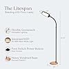Brightech Litespan Slim LED Floor Lamp - Modern Reading Light Over Chair for Living Rooms & Offices, Tall With Adjustable Gooseneck, Crafts Work Light, Dimmable Standing for Bedroom - Wood