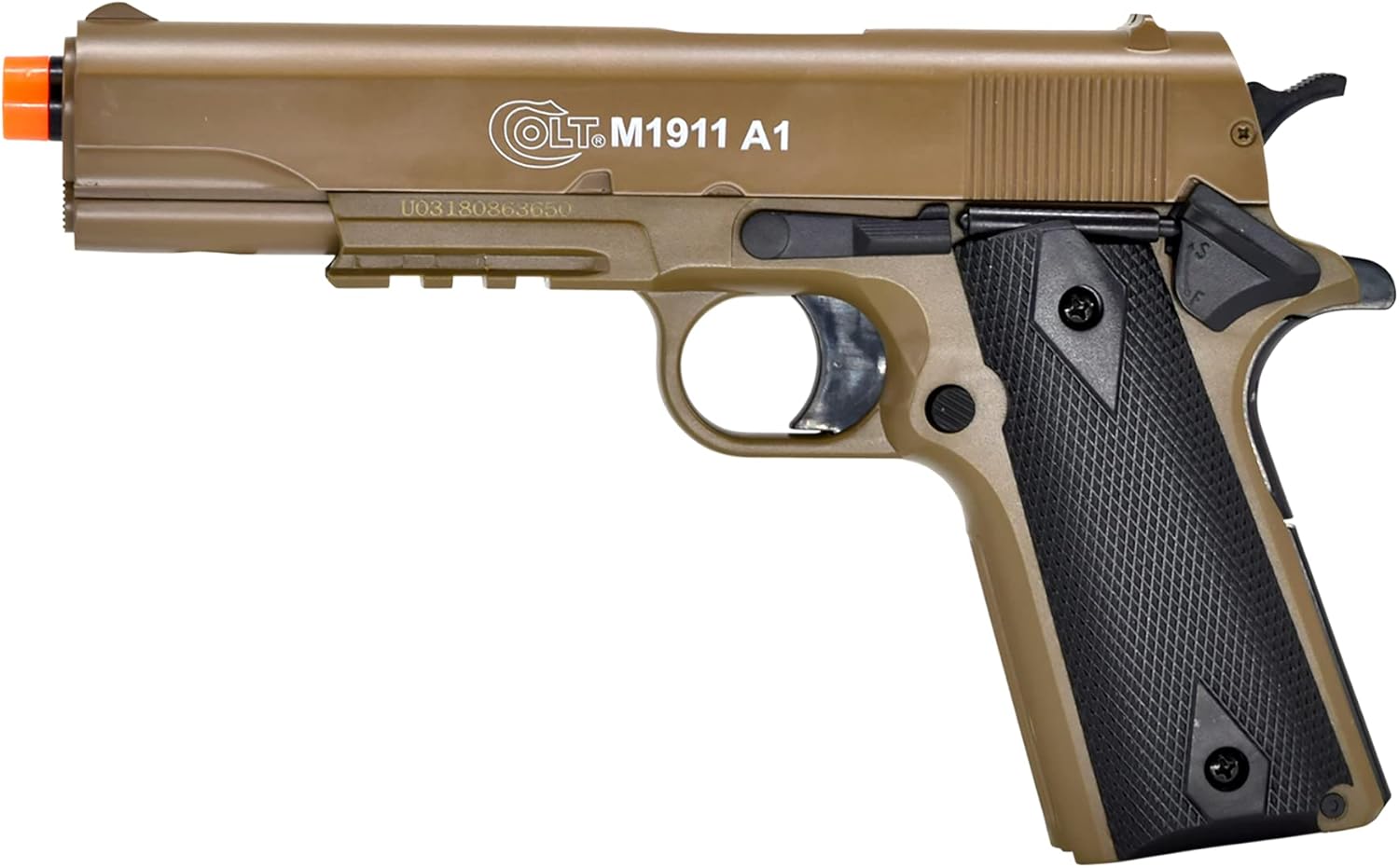 Pistola de airsoft Soft AIR USA Colt 1911 A1 Spring con corredera metálica, 345 FPS, marrón