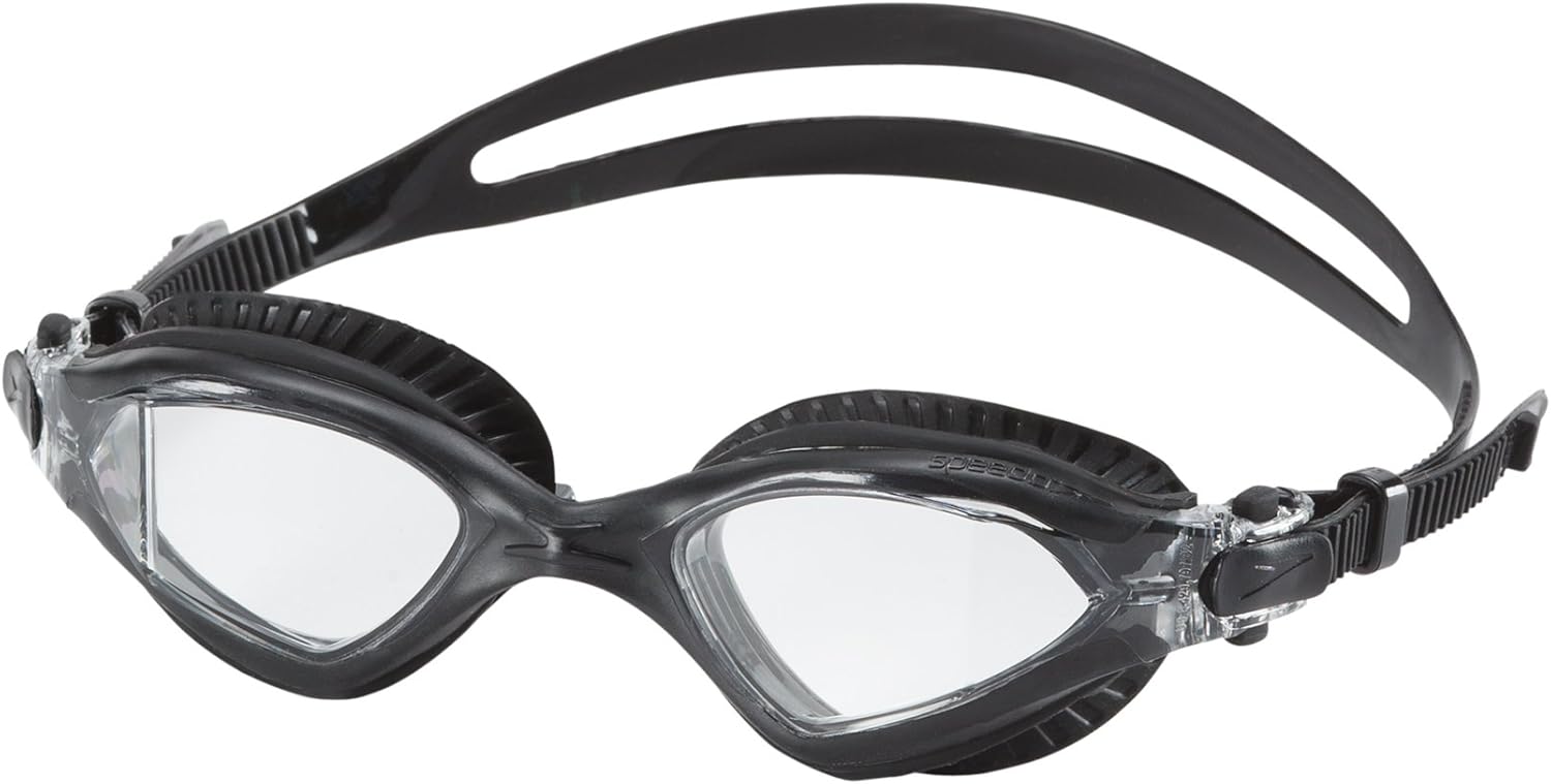 The MDR 2.4 Goggle combines the best of Speedo's dive mask technologies with proven goggle performance features. New Elastomeric technology expands to the contours of your face, reducing pressure to eliminate "raccoon eyes." Clear sight innovation splits the lens instead of bending it to reduce both distortion and eye fatigue.