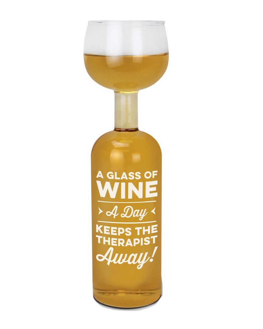 BigMouth Inc. Wine Bottle Glass - “A Glass Of Wine A Day Keeps The Therapist Away”, Large Wine Glass, 750 ml
